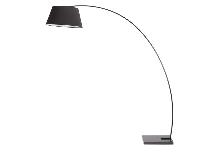 The sweeping arc and tapered shade of the Evan Floor Lamp is as sculptural as it is practical with broad reach and directed lighting. The Evan features a fabric shade, powder coat steel stem and a marble base, presenting a smart balanced aesthetic. Each piece of marble is expertly crafted out of a unique piece of natural stone, creating beautiful variations and one-of-a-kind details.