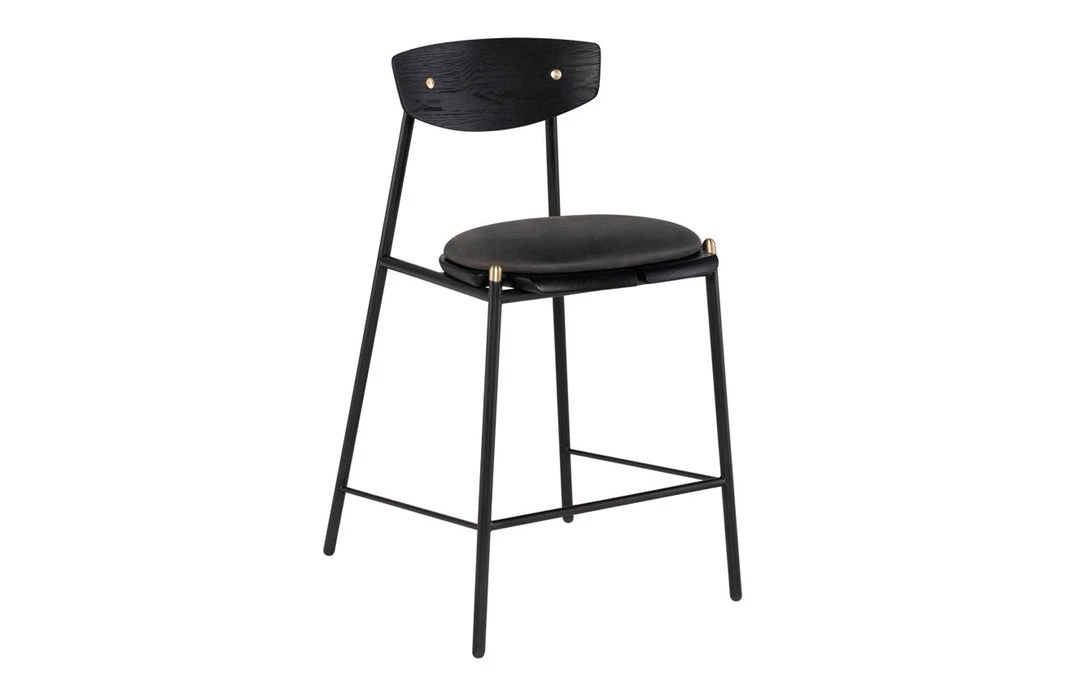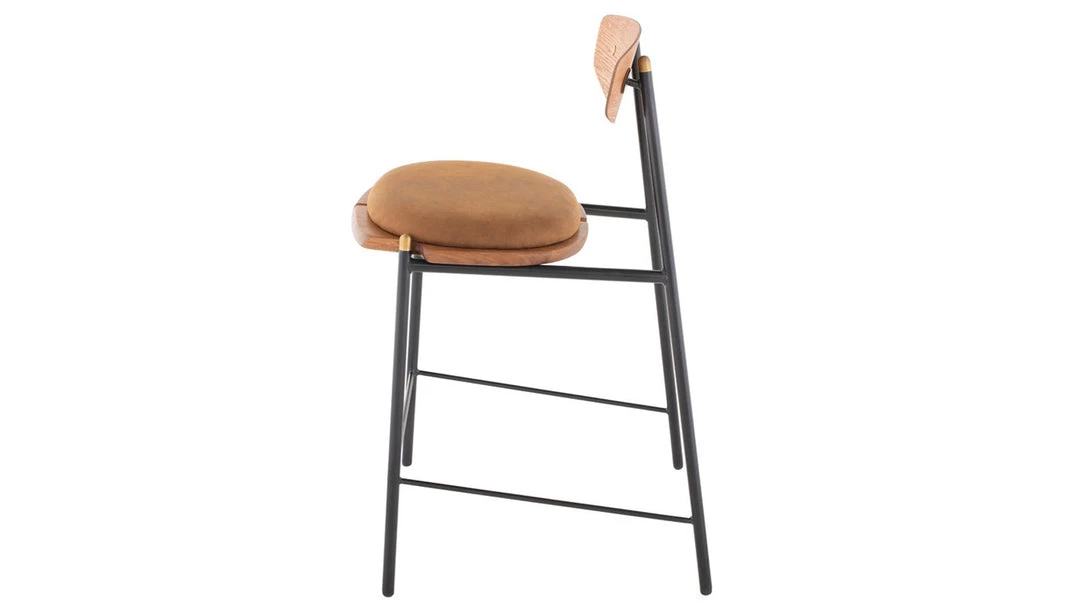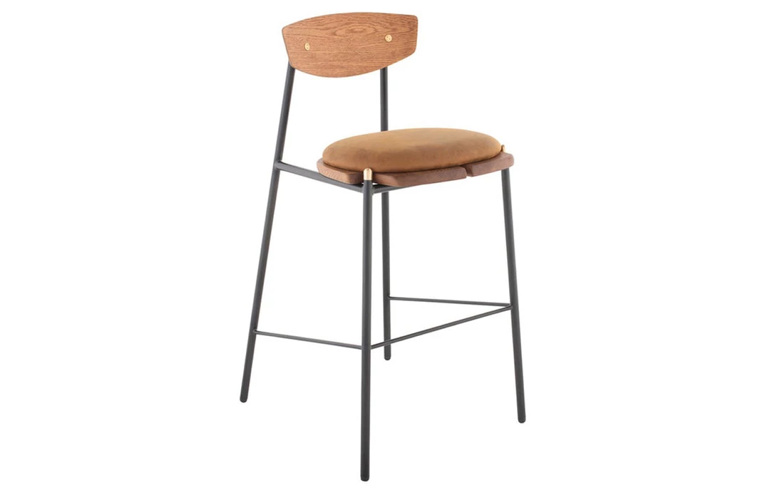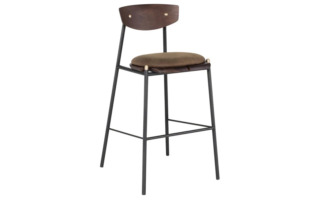 Reminiscent of early-twentieth-century school-house chairs–in refreshed, revised, forward-thinking shapes–the Kink counter stool offers an authentic, original seating option finished in padded umber leather upholstery.