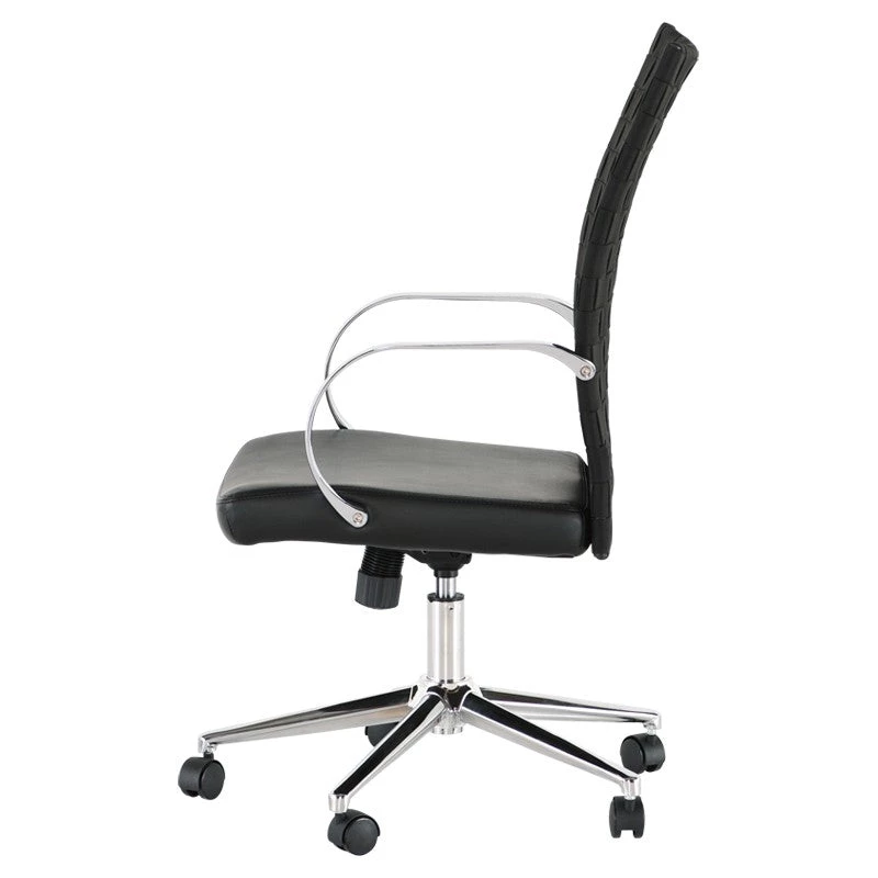 Mia Office Chair black and grey naugahyde seat with chrome aluminium base.