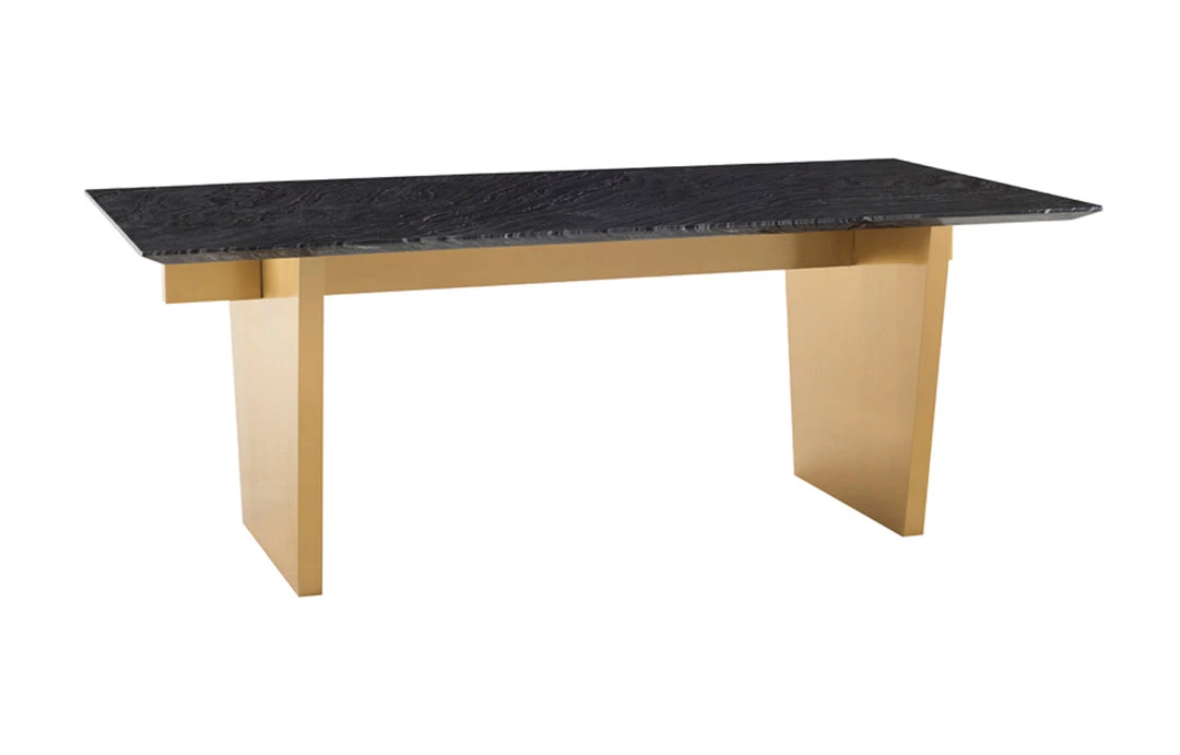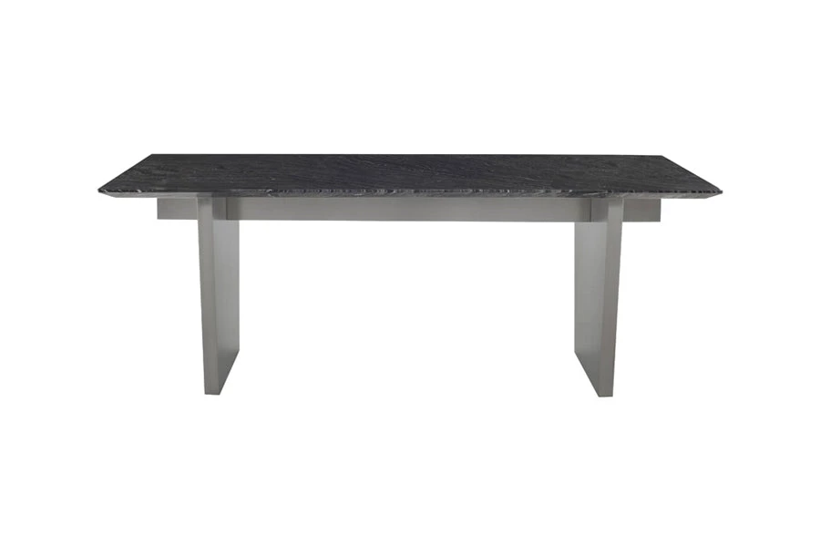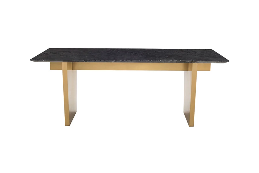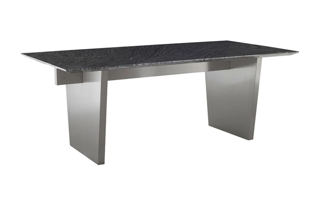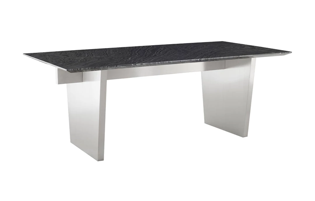Bold juxtaposition defines the Aiden Dining Table. A stylish table top rests upon a modern post and beam inspired base. The seamless pairing projects a timeless, contemporary narrative.