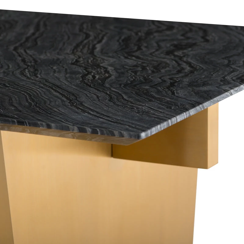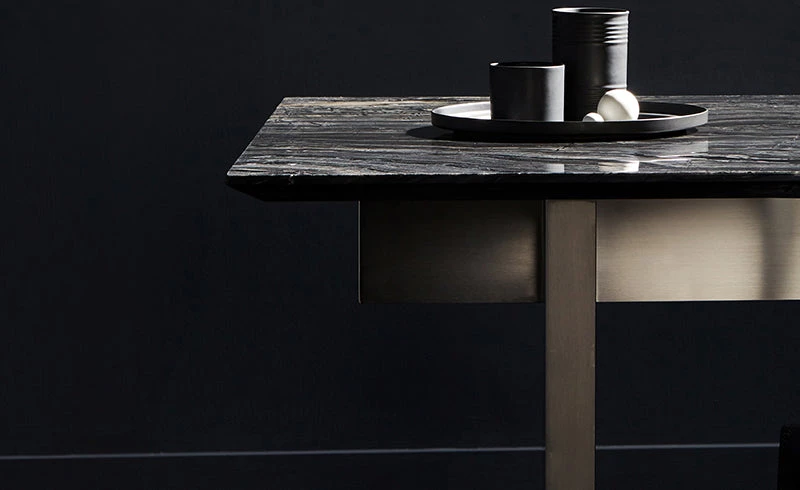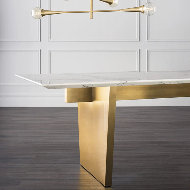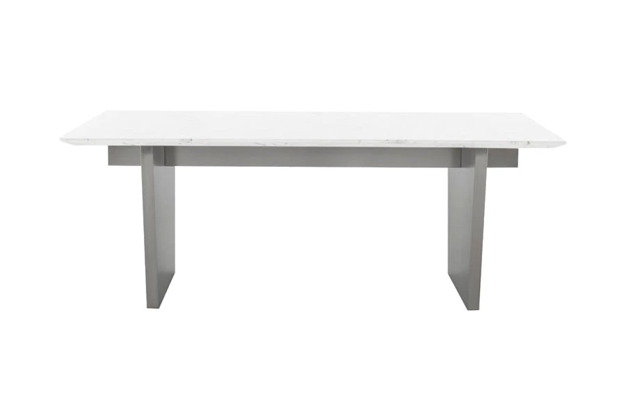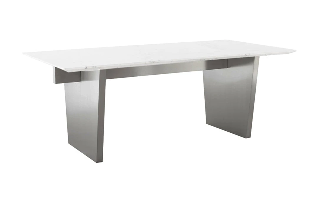 Bold juxtaposition defines the Aiden Dining Table. A stylish table top rests upon a modern post and beam inspired base. The seamless pairing projects a timeless, contemporary narrative.