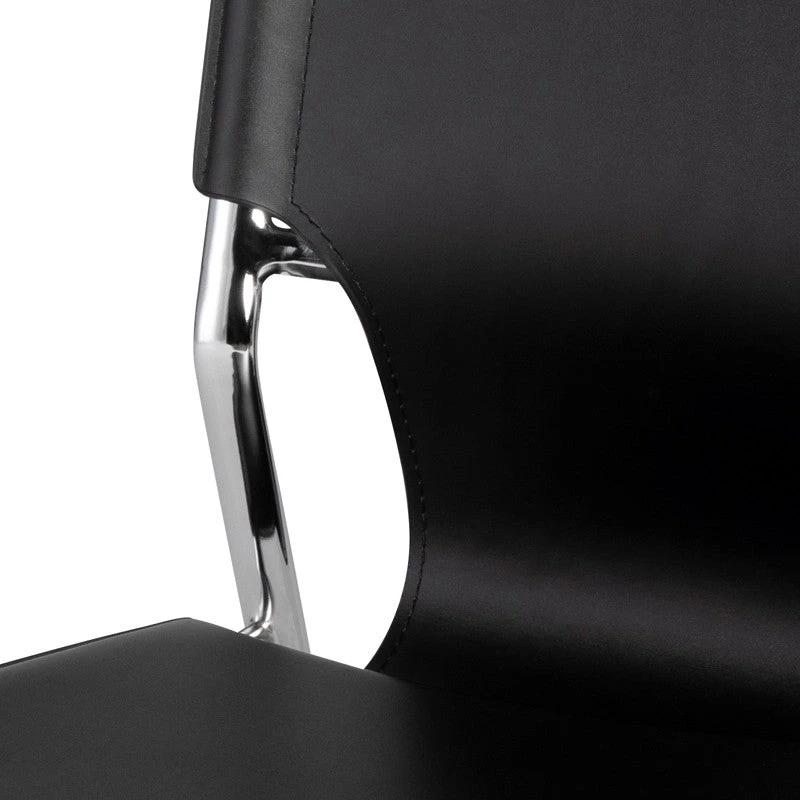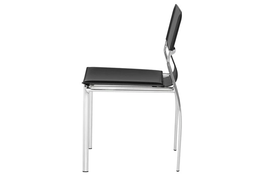 The Lisbon dining chair, a pleasing union of dining comfort and smart contemporary design. Setting the tone a sturdy, light frame using elliptical steel tubing with a chrome finish. The highlight, an artfully sculpted leather seat and seat back, designed for support and comfort.