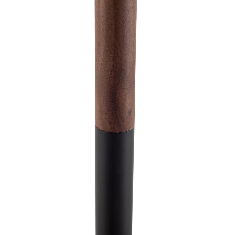 The deceptively simple Monroe Floor Lamp blurs the distinction between body and accent. With near-equal lengths of stained wood and painted metal, anchored by a round base and fabric shade, for a playfully striped appearance.
