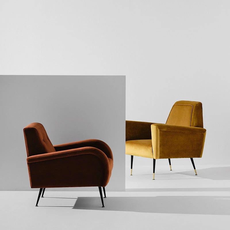 The elegant, bold Hugo Occasional Chair mixes materials as well as proportions. Enveloped in lush fabric the deep-seated frame embraces comfort and style.