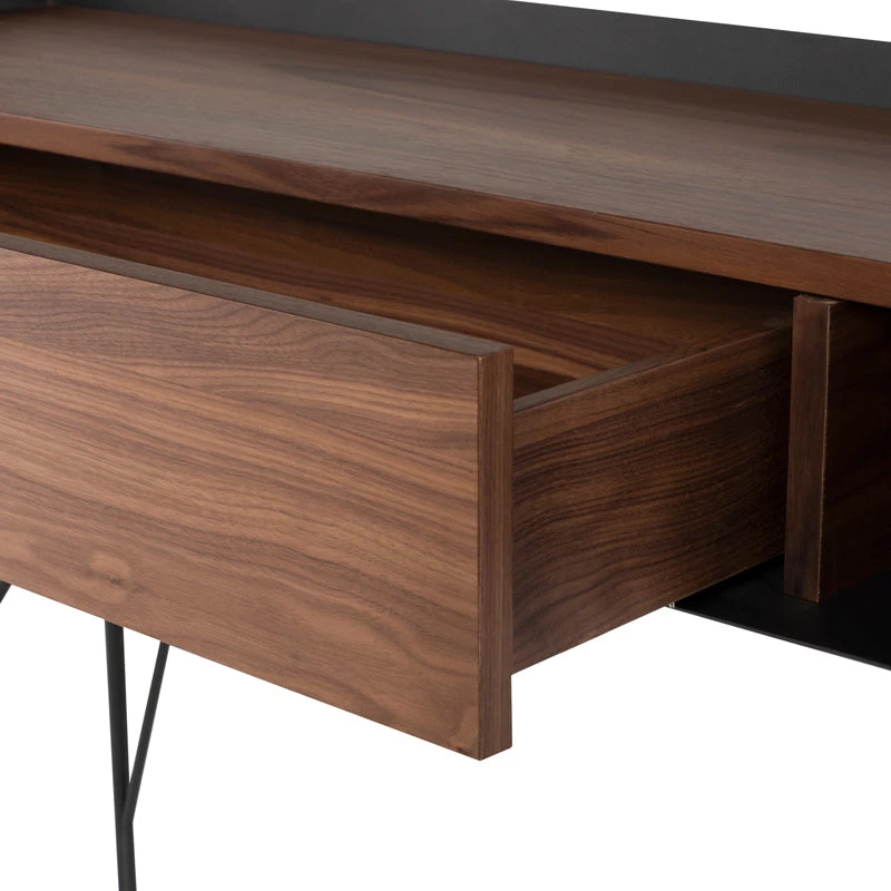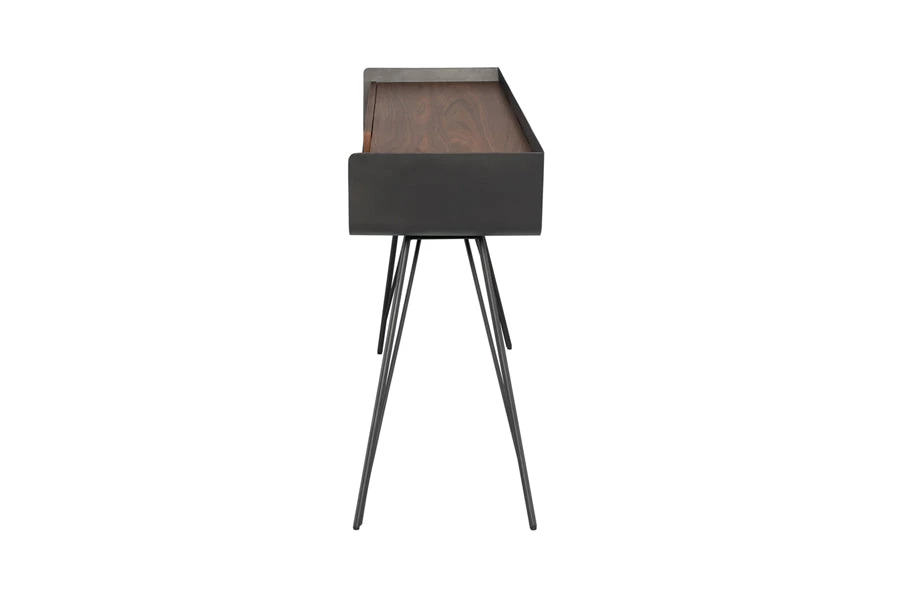The slim metal frame and thin angular titanium legs of the Noori Console create a piece that is as sleek as it is practical. From a hallway sideboard to a bedroom vanity, the adaptable design is suited for a variety of uses. The front drawer and top bring a sophisticated character to its slender profile.