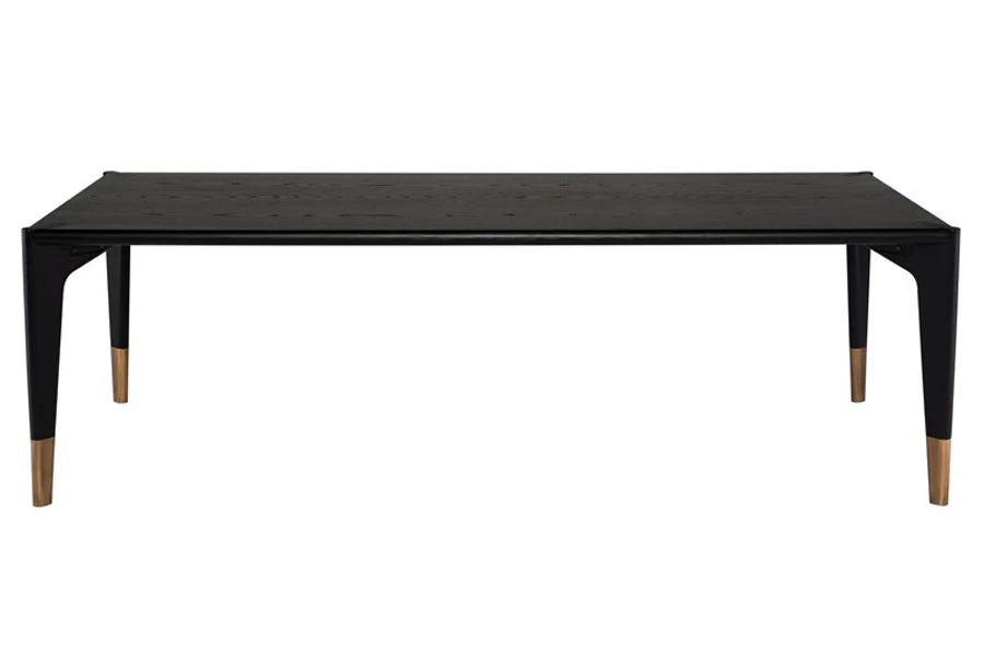 Understated with refined hints of glamour the Quattro Dining Table makes a confident and poised statement. The dignified simplicity of the onyx oak veneer top, oak legs and polished lines are underscored by stylish gold hardware.