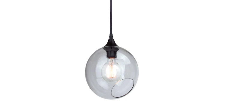 The Sphere Pendant, a classic contemporary design featuring a circular glass shade and off center cutaway accent. Suitable as a single pendant or suspended as a grouping the Spheres elegant minimalist aesthetic allows for a verity of hanging options.