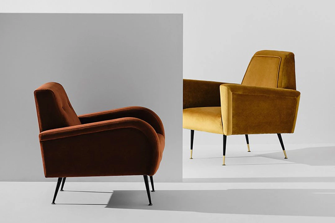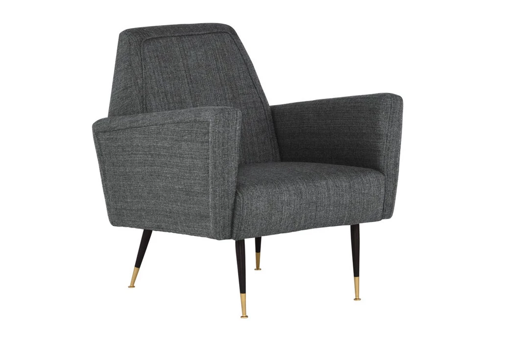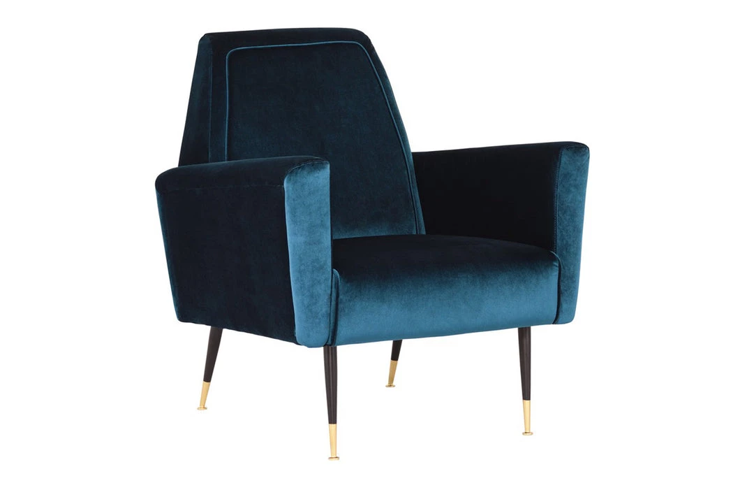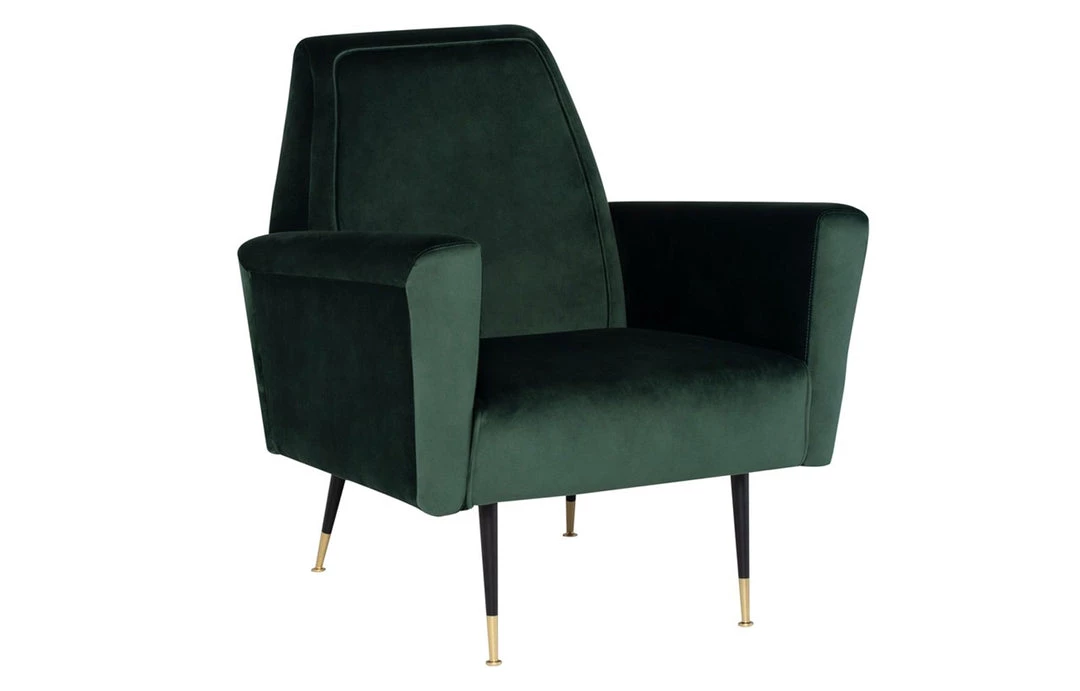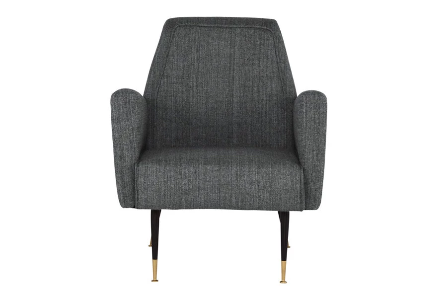 The Victor Occasional Chair features a handsome frame supported by elongated mixed metal legs. The dramatic deep-seated form and striking lines blend modern refinement with sophisticated design.