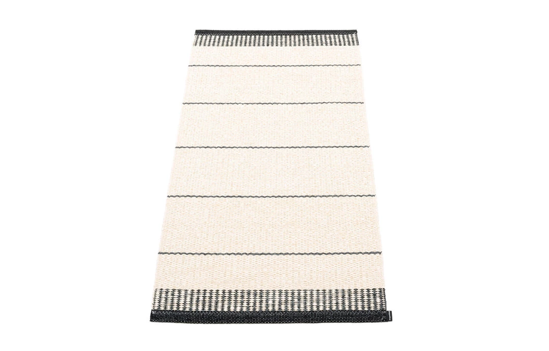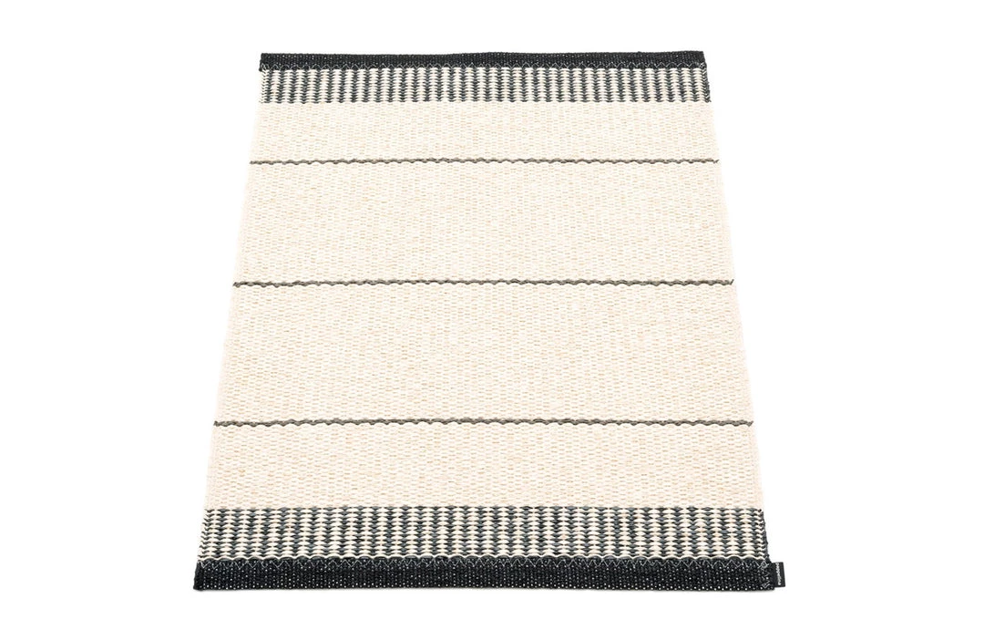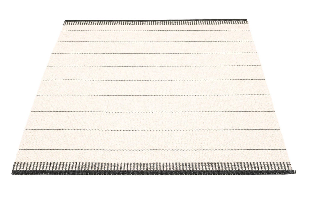 Made in Dalarna, Sweden. Woven on a traditional loom using wooden shuttles. Very practical and easy-to-care-for rug in Swedish manufactured, certified PVC. Double folded hemmed edge with strong seam and sewn rubber label. Measurements may vary ±4% as a result of the various craft processes during manufacturing.