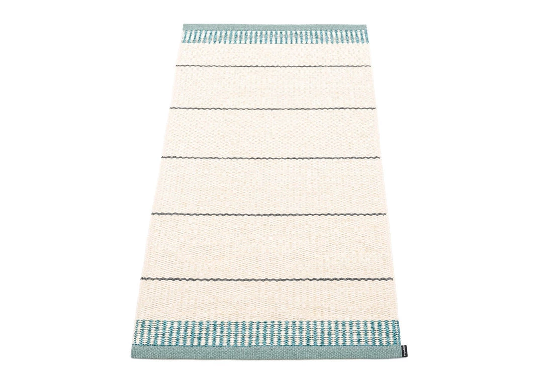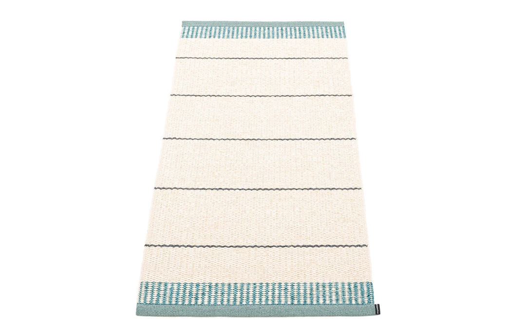 Made in Dalarna, Sweden. Woven on a traditional loom using wooden shuttles. Very practical and easy-to-care-for rug in Swedish manufactured, certified PVC. Double folded hemmed edge with strong seam and sewn rubber label. Measurements may vary ±4% as a result of the various craft processes during manufacturing.