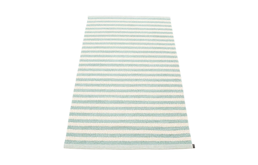 The Duo Pale Turquoise & Vanilla Rug is a practical-to-use rug that adds classy element to your home and workplace decor. It is manufactured by ISO certified plastic in Dalarna, Sweden. It is finely woven on a customary loom using wooden shuttles that assures strength and good quality of the product. It features double folded hemmed edge with strong seam and sewn rubber label. There is no use of hefty metals or damaging softeners in the making that makes it practical and an easy-to-care-for product. It is available in two different sizes to suitably fit into spaces.