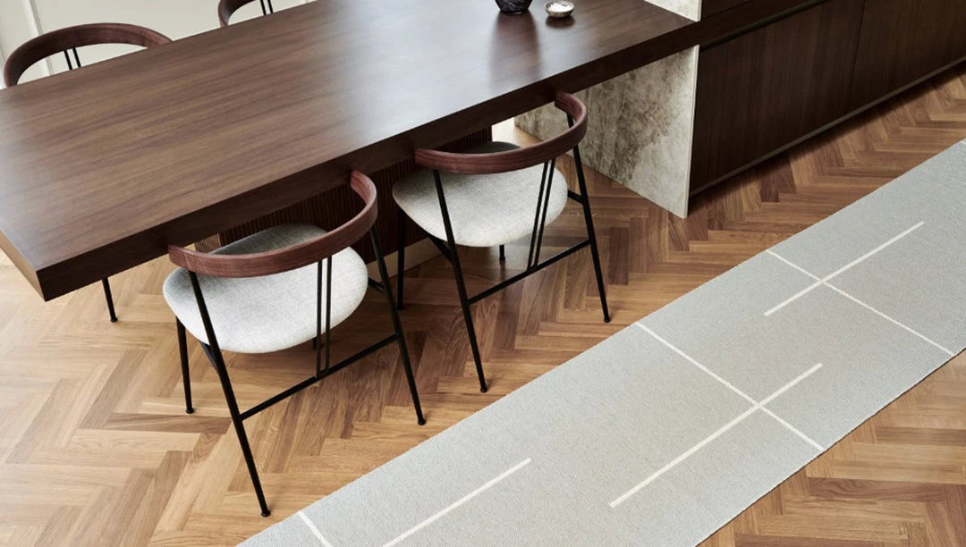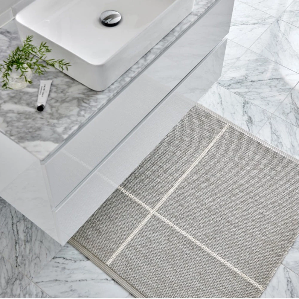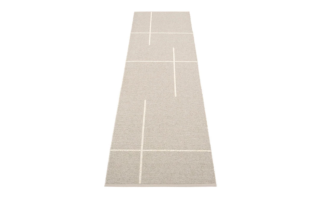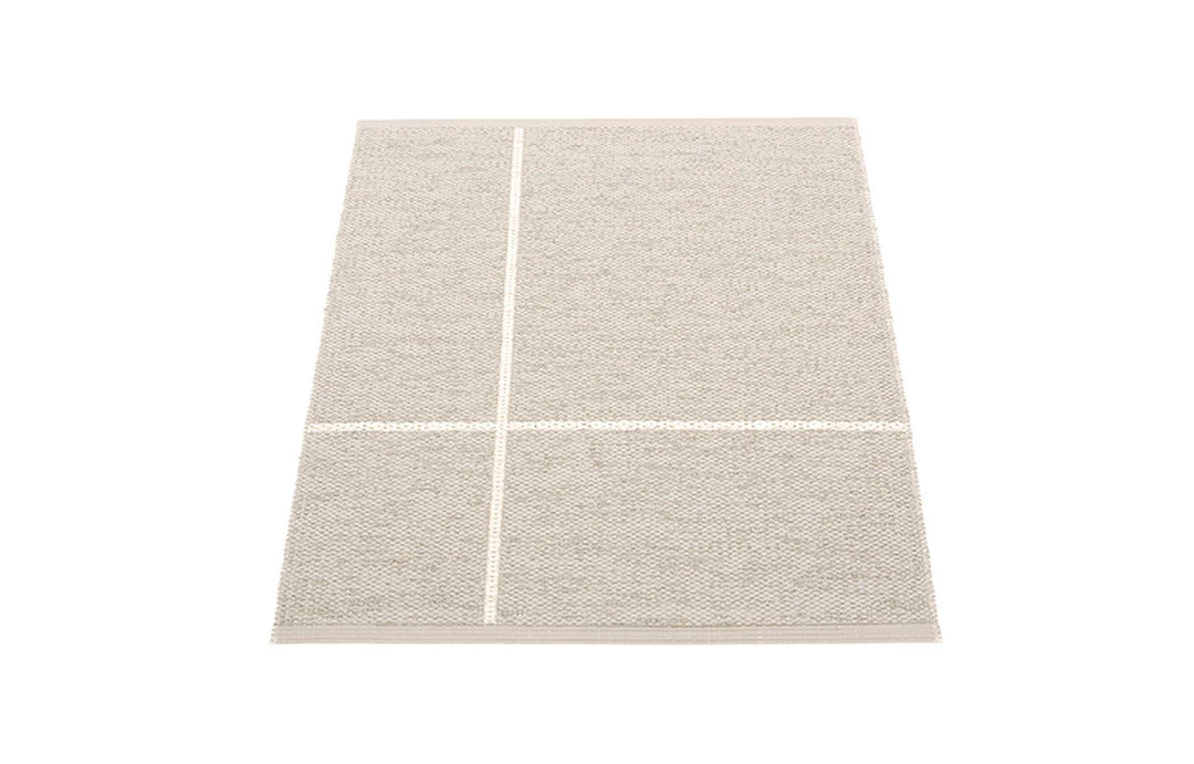 Plastic rug for indoor and outdoor use, made in Sweden. Made of Swedish manufactured, certified phthalate free PVC ribbon, woven on traditional looms using wooden shuttles. Reinforced, welded edges for strength and durability. Very practical and easy-to-care-for, hand or machine wash at low temperature 30°C/85F, no spin.
