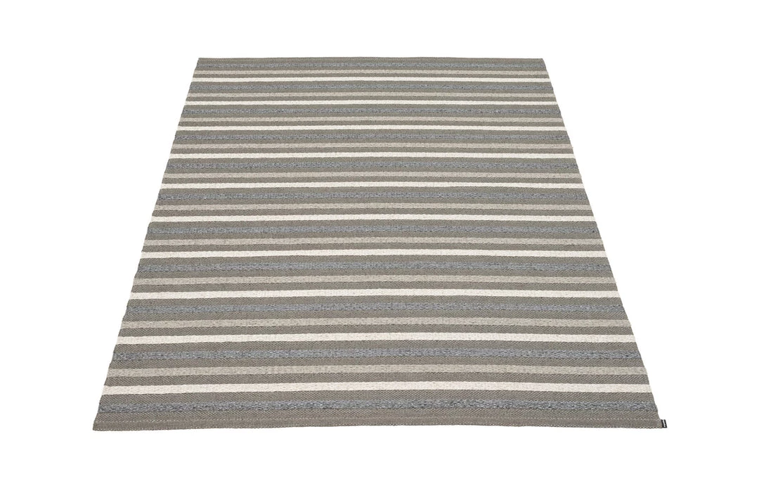 Made in Dalarna, Sweden. Woven on a traditional loom using wooden shuttles. Very practical and easy-to-care-for rug in Swedish manufactured, certified PVC. Double folded hemmed edge with strong seam and sewn rubber label. Measurements may vary ±4% as a result of the various craft processes during manufacturing.