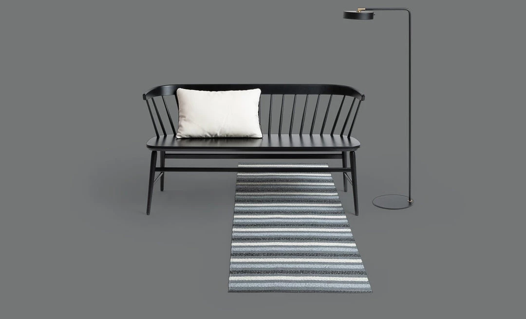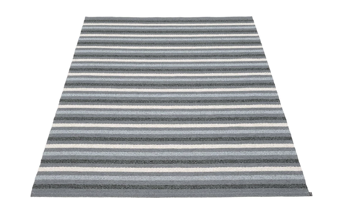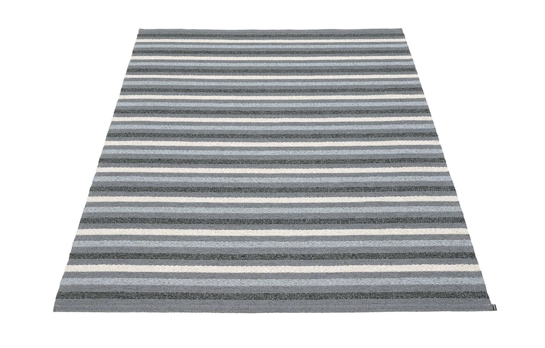 Made in Dalarna, Sweden. Woven on a traditional loom using wooden shuttles. Very practical and easy-to-care-for rug in Swedish manufactured, certified PVC. Double folded hemmed edge with strong seam and sewn rubber label. Measurements may vary ±4% as a result of the various craft processes during manufacturing.
