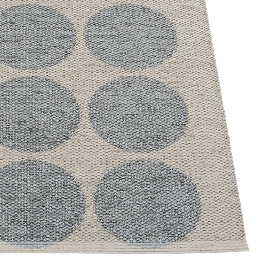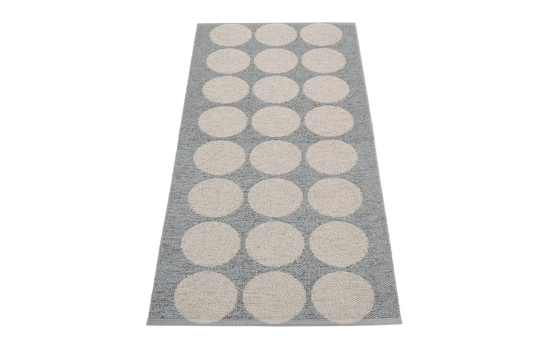 Made in Dalarna, Sweden. Woven on a traditional loom using wooden shuttles. Very practical and easy-to-care-for rug in Swedish manufactured, certified PVC. Reinforced, welded edges for strength and durability, with embossed Pappelina logo. Measurements may vary ±4% as a result of the various craft processes during manufacturing.