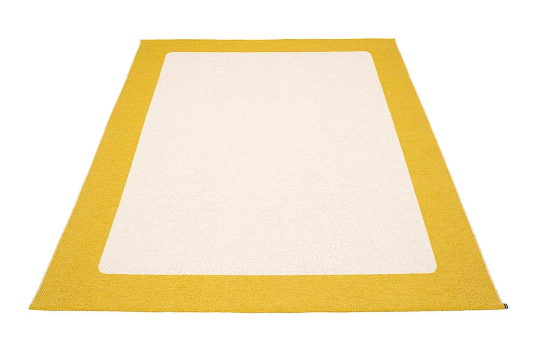Plastic rug for indoor and outdoor use, made in Sweden. Made of Swedish manufactured, certified phthalate free PVC ribbon, woven on traditional looms using wooden shuttles. Reinforced, welded edges for strength and durability. Very practical and easy-to-care-for, hand or machine wash at low temperature 30°C/85F, no spin.