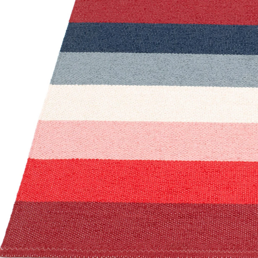 Made in Dalarna, Sweden. Woven on a traditional loom using wooden shuttles. Very practical and easy-to-care-for rug in Swedish manufactured, certified PVC. Double folded hemmed edge with strong seam and sewn rubber label. Measurements may vary ±4% as a result of the various craft processes during manufacturing.