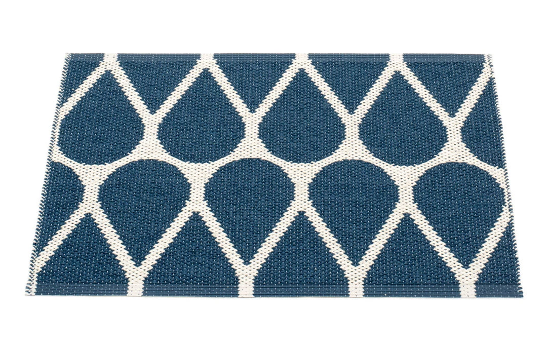Made in Dalarna, Sweden. Woven on a traditional loom using wooden shuttles. Very practical and easy-to-care-for rug in Swedish manufactured, certified PVC. Reinforced, welded edges for strength and durability, with embossed Pappelina logo. Measurements may vary ±4% as a result of the various craft processes during manufacturing.