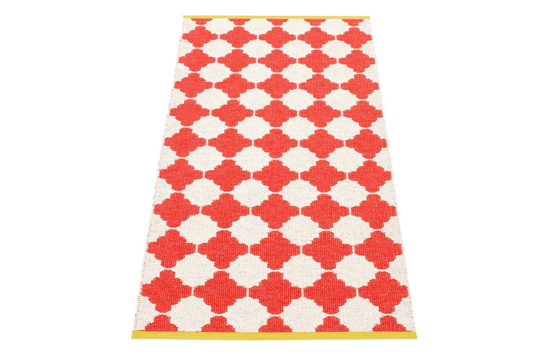 Pappelina Rugs Marre Coral Red & Vanilla With Mustard Stripe Runner Rug