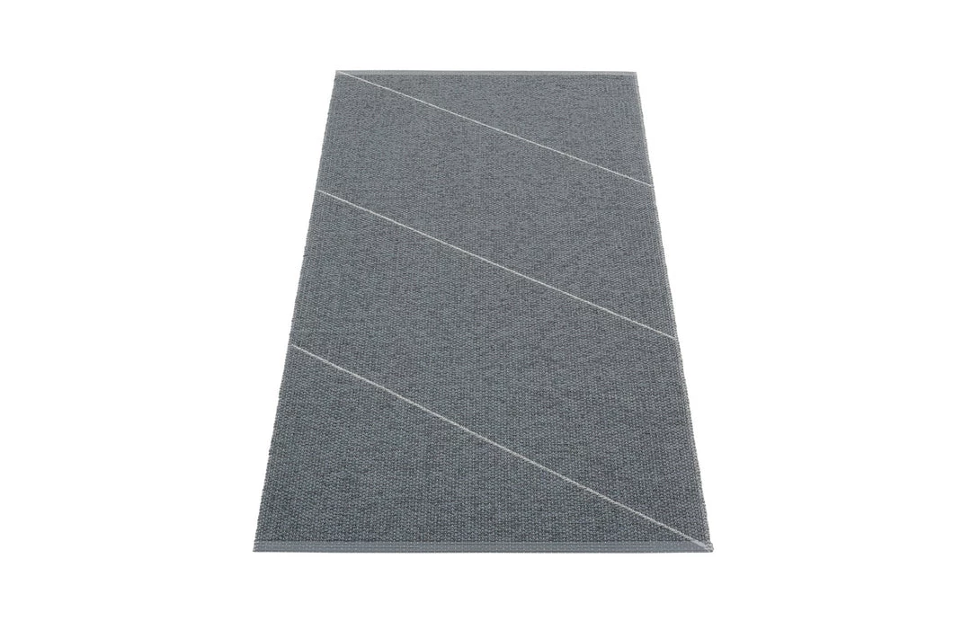 Plastic rug for indoor and outdoor use, made in Sweden. Made of Swedish manufactured, certified phthalate free PVC ribbon, woven on traditional looms using wooden shuttles. Reinforced, welded edges for strength and durability. Very practical and easy-to-care-for, hand or machine wash at low temperature 30°C/85F, no spin. Measurements may vary ±4% due to the weaving process. Thickness 5 mm/0.2”.