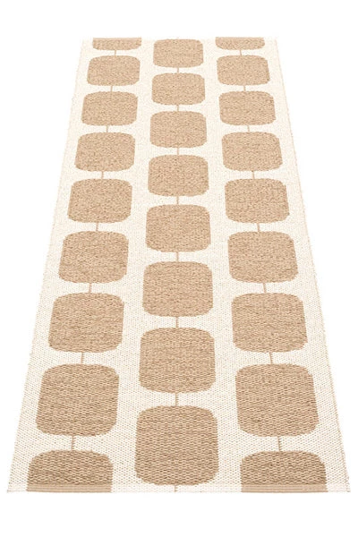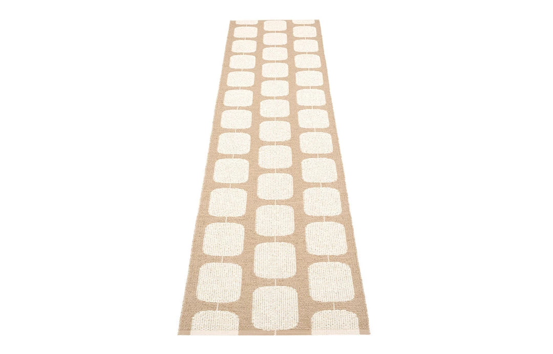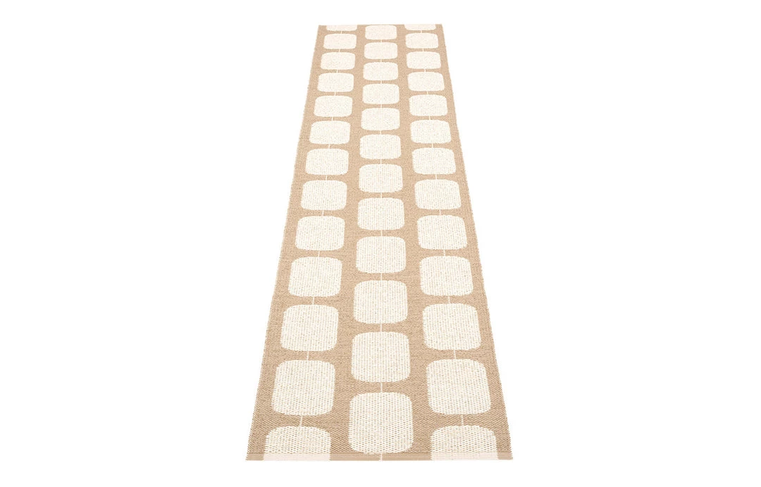 Plastic rug for indoor and outdoor use, made in Sweden. Made of Swedish manufactured, certified phthalate free PVC ribbon, woven on traditional looms using wooden shuttles. Reinforced, welded edges for strength and durability. Very practical and easy-to-care-for, hand or machine wash at low temperature 30°C/85F, no spin.
