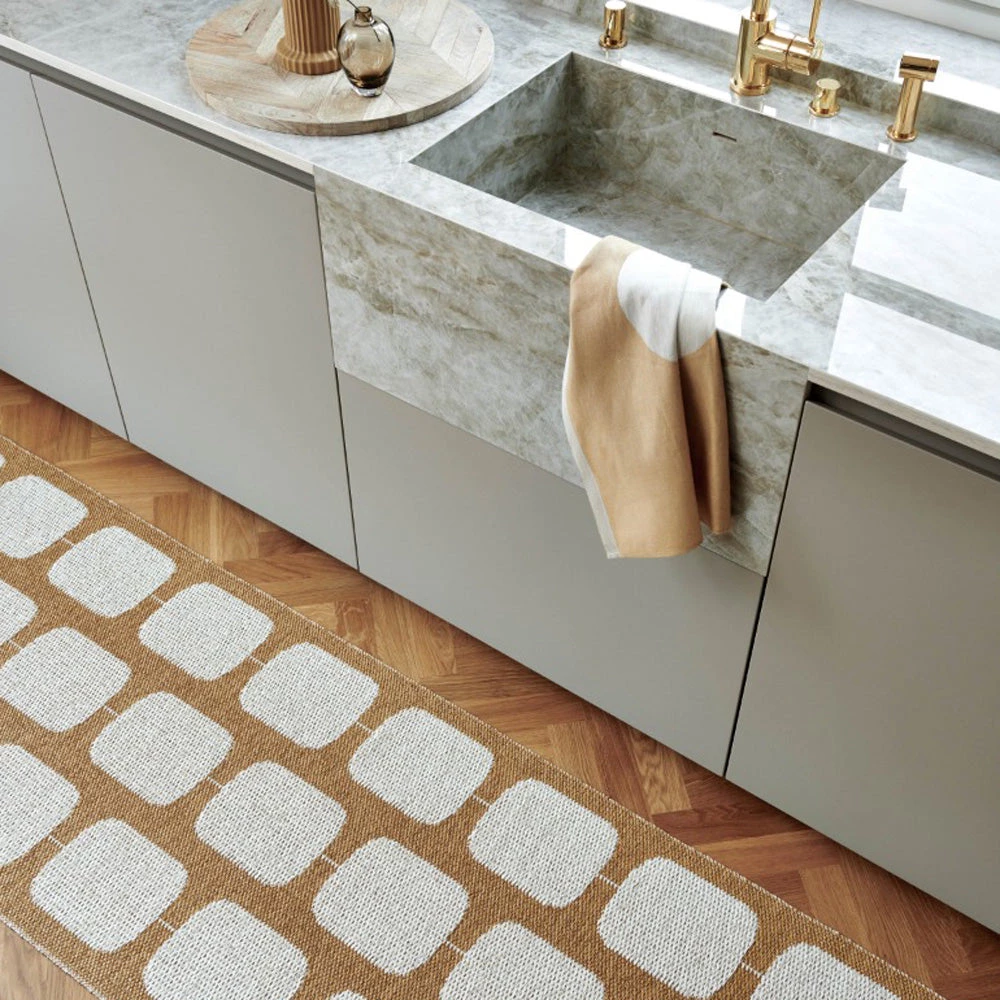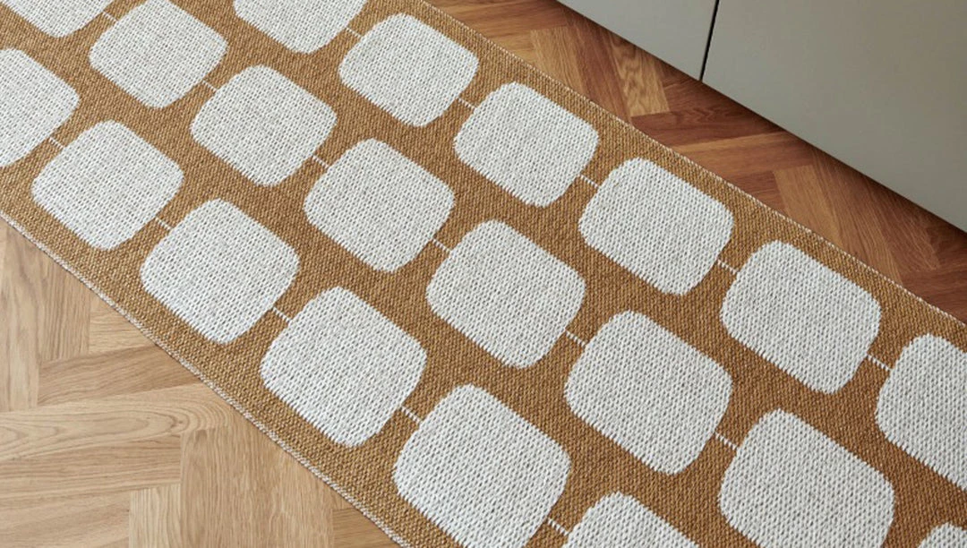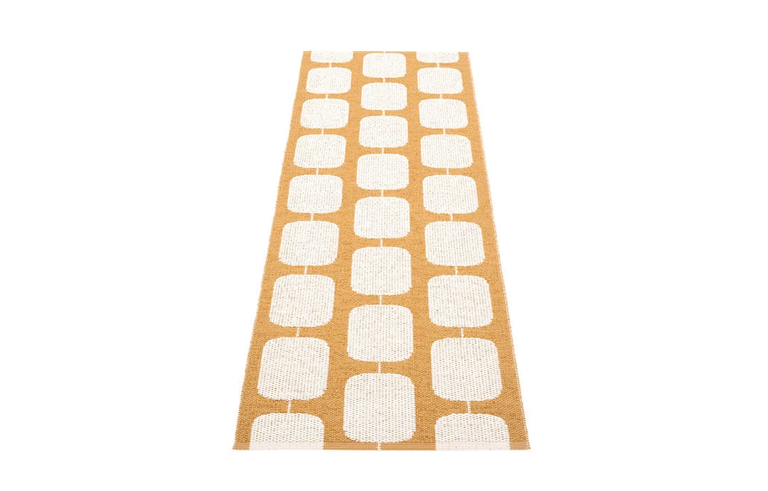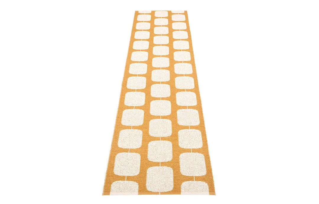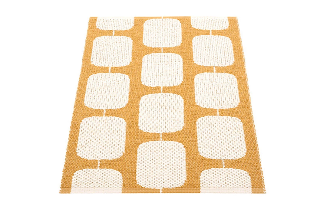 Plastic rug for indoor and outdoor use, made in Sweden. Made of Swedish manufactured, certified phthalate free PVC ribbon, woven on traditional looms using wooden shuttles. Reinforced, welded edges for strength and durability. Very practical and easy-to-care-for, hand or machine wash at low temperature 30°C/85F, no spin.