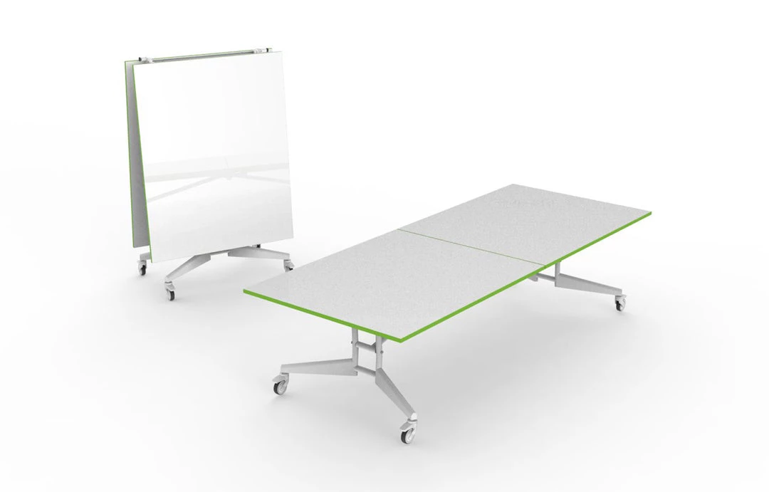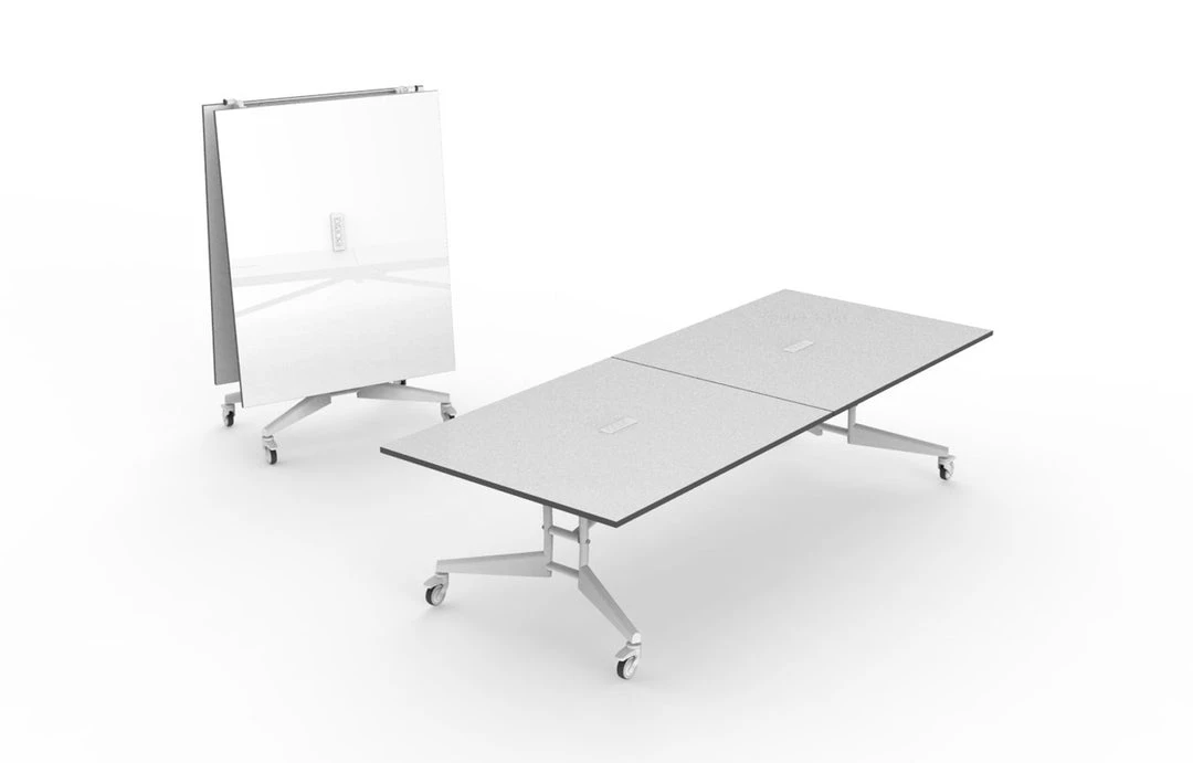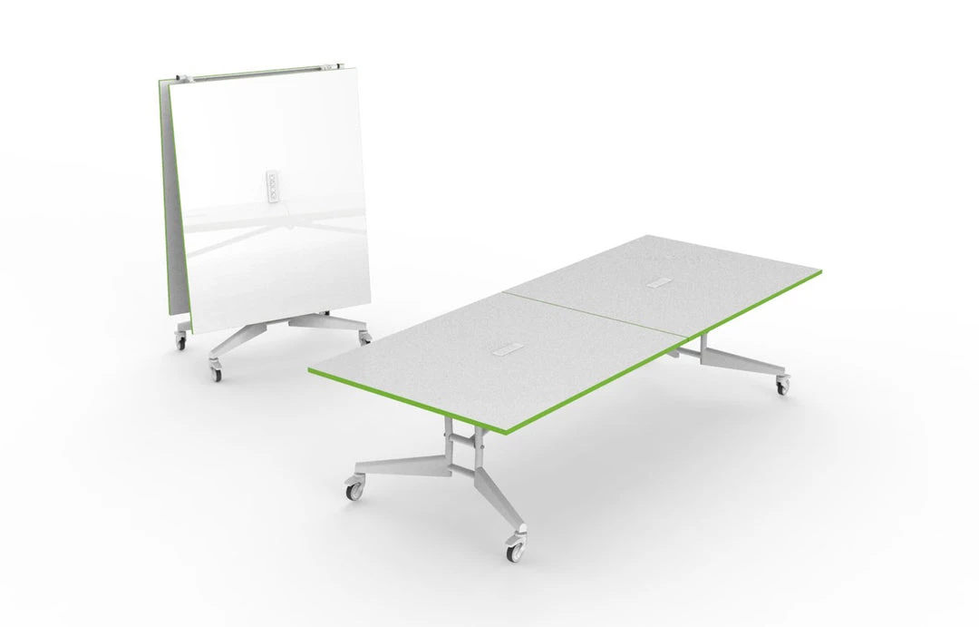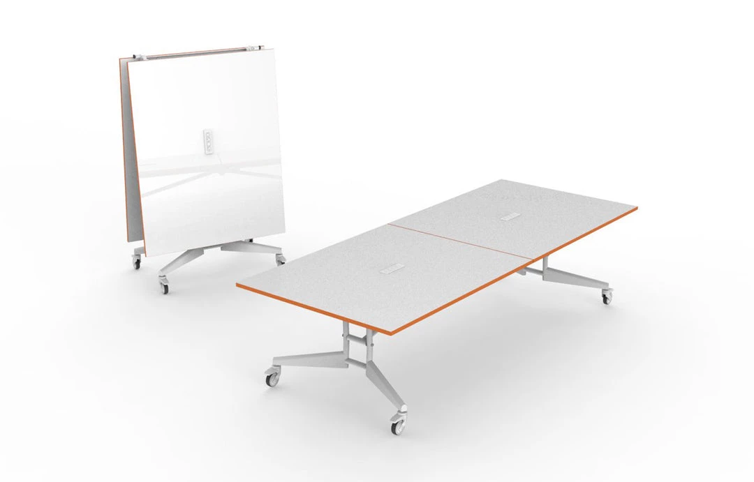 Nomad 10′ or 12′ starts with solid construction. A Folding Table that multitasks like people with dual functionality. First, it is a conference table with optional built in power ports, and second, when folded, it becomes a Mobile, Double Sided Presentation Marker Board on heavy duty casters.