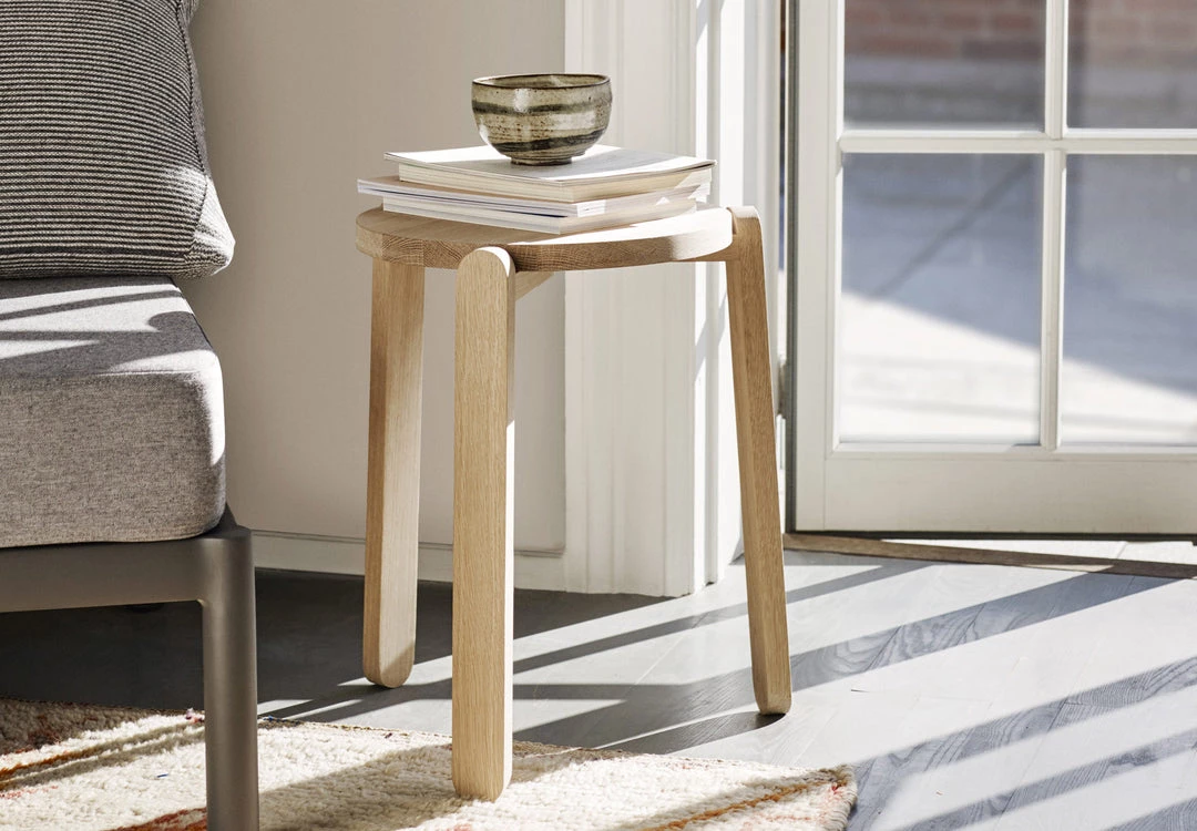 The Nomad stool, designed in untreated oak, is a minimalistic version of the classical three-legged stool. The elegant design is rooted in a characteristic Nordic passion for materials and functionality, and lives up to the mantra that “less is more”. The stool is stack-able and takes up a little space when stored or not in use.