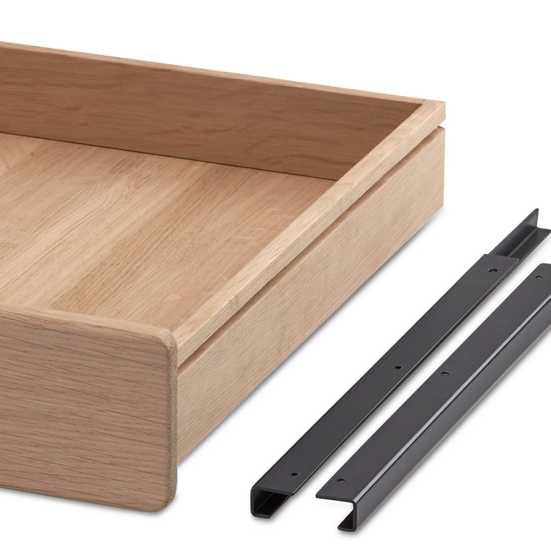 This optional add-on optimises desk storage. It has one or two drawers and can be installed on either the left or the right side of the desk. The drawer is just the right size for a laptop.