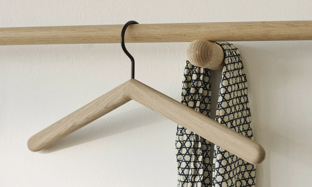 The traditional hanger in the Georg collection has a turnable hook and a flat body to take up less room. The hanger can be used in a variety of contexts and reflects the same principle as the rest of the series: that Georg should be able to hold its own in combination with other furniture types.