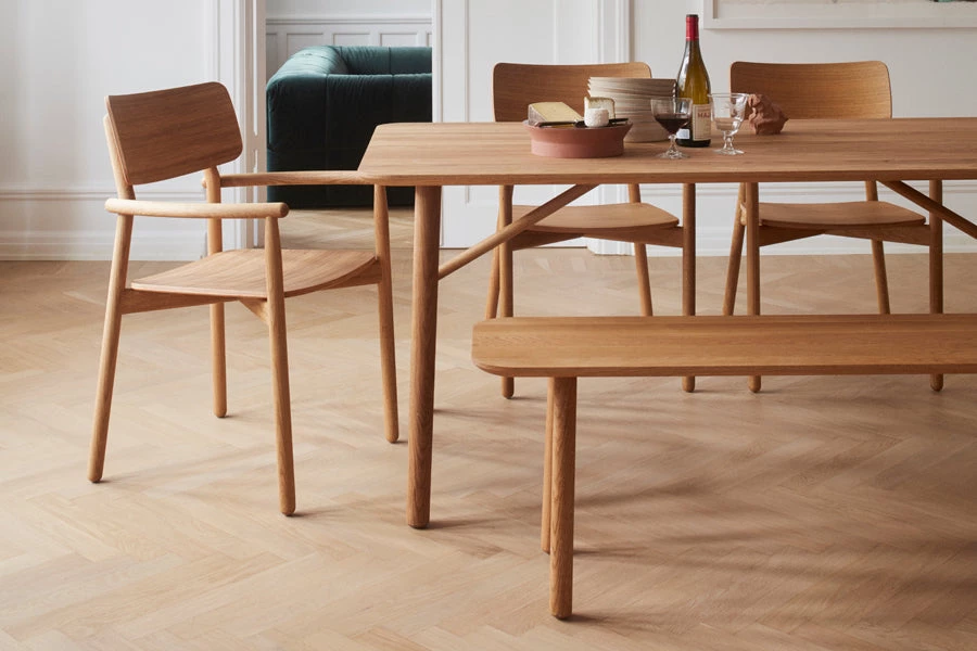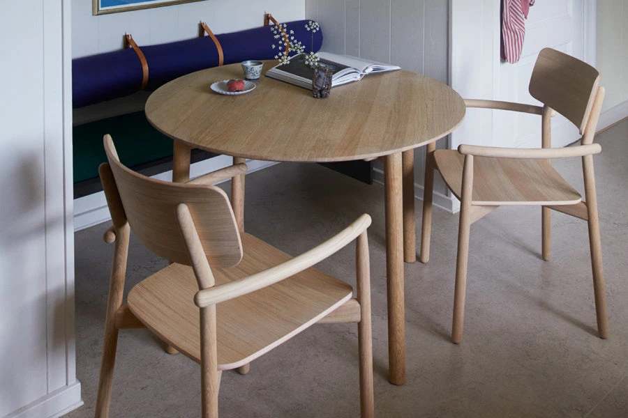 Hven Table is made from solid, FSC-certified oak with a stunning grain pattern and remarkable durability. A soft, minimalist design, characterized by its round legs and stunning grain pattern. Ø110 is a perfect size for smaller homes or in the kitchen as the round shape visually takes up less space. Easy to combine with other items in the living room. Tables fits four people, six people & eight people.