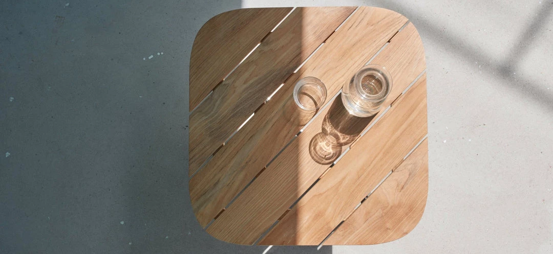 Lilium is an informal furniture series that is light and sturdy at the same time. Light, with its slender X-shaped frame in stainless steel, sturdy, with its wooden planks that greet you with a contemporary and welcoming gesture. The Lilium lounge table is square with the graphic detail stemming from the planks – and thus the grain of the wood – being placed across, rather than lengthwise; an optical gimmick that lends this table its unique signature.