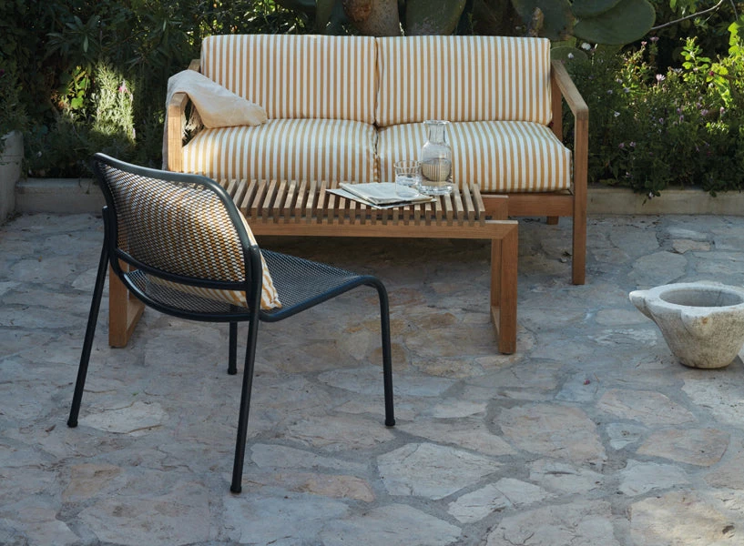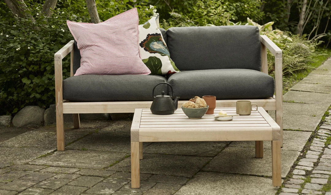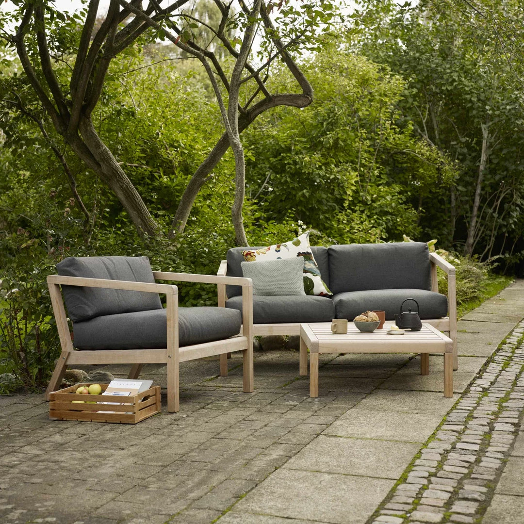 Virkelyst 2-seater is a modern outdoor 2-seater with the seating comfort of an indoor furniture. The simple wooden frame strikes a contrast with the thick, soft cushions. The upholstery fabrics are Oeko-Tex certified and extremely color and light-fast as well as water and dirt-repellent and even mildew-resistant. The cushion is filled with airy fossflakes – an allergy-friendly polyethylene material which maintains its volume and shape over time.