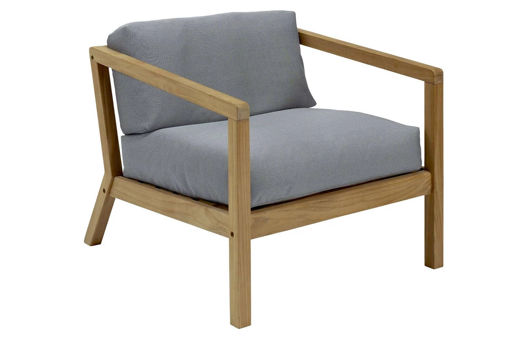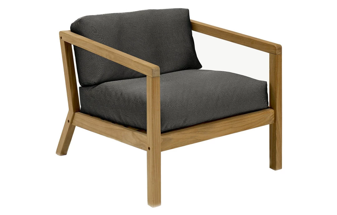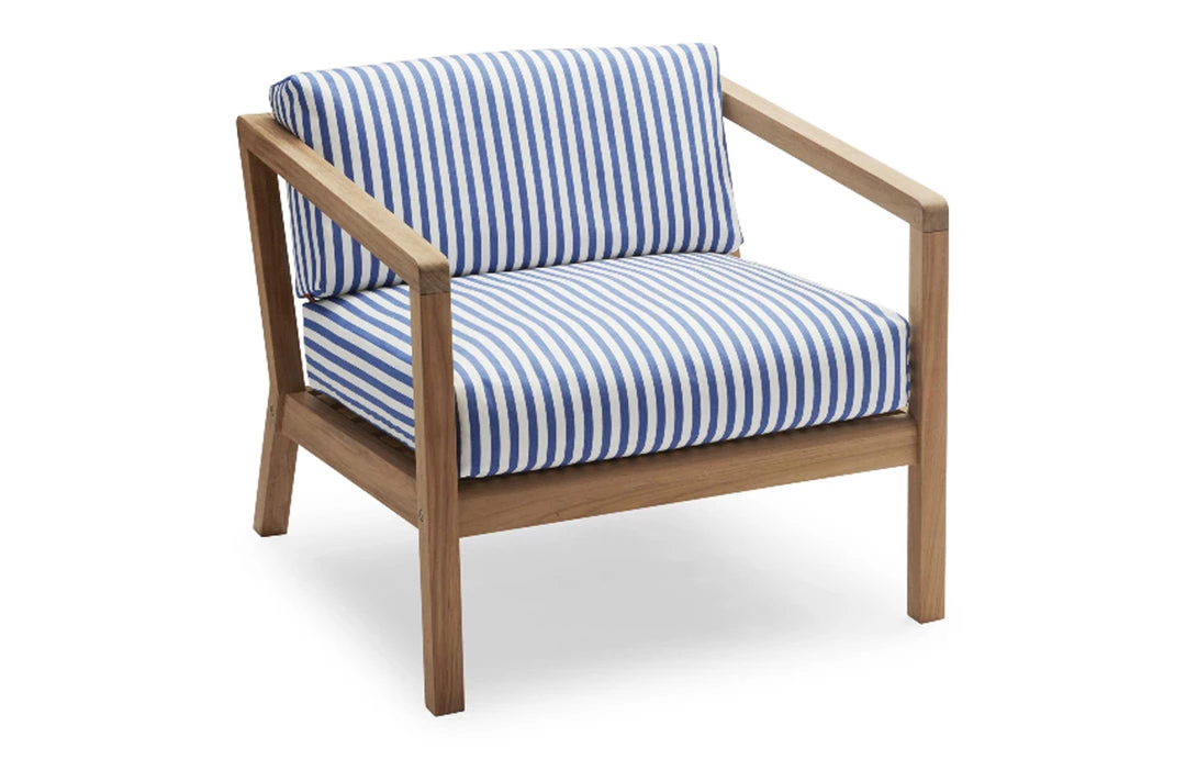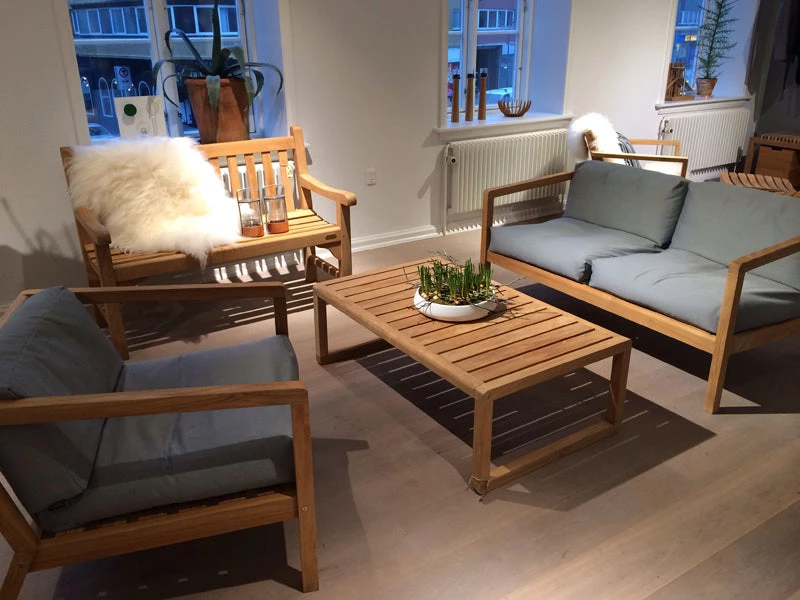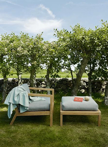 Virkelyst Chair is a modern outdoor chair with the seating comfort of an indoor furniture. The simple wooden frame strikes a contrast with the thick, soft cushions. The upholstery fabrics are Oeko-Tex certified and extremely color and light-fast as well as water and dirt-repellent and even mildew-resistant. The cushion is filled with airy fossflakes – an allergy-friendly polyethylene material which maintains its volume and shape over time.