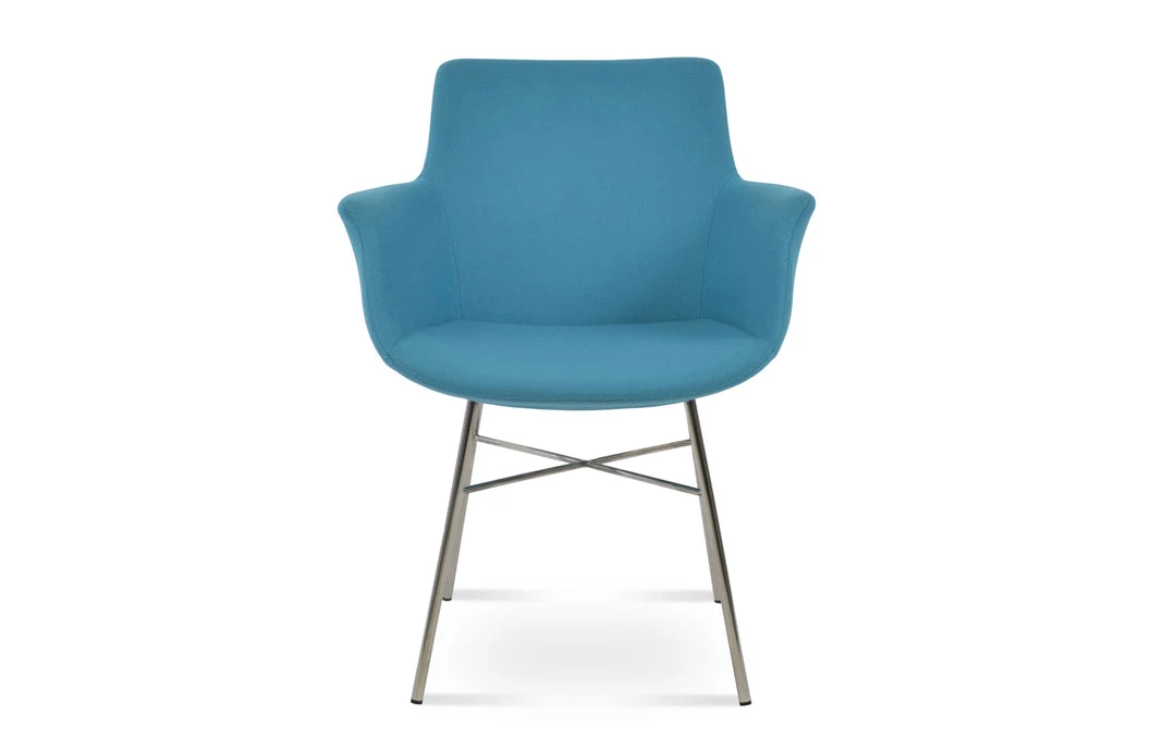Bottega Cross is a unique dining chair with a comfortable upholstered seat and backrest on cross metal base. The seat has a steel structure with “S” shape springs for extra flexibility and strength. This steel frame is molded by an injecting polyurethane foam. Bottega seat is upholstered with a removable zipper enclosed leather, PPM, leatherette or wool fabric slip cover. This contemporary chair is suitable for both residential and commercial use. Bottega Cross is designed by Tayfur Ozkaynak.