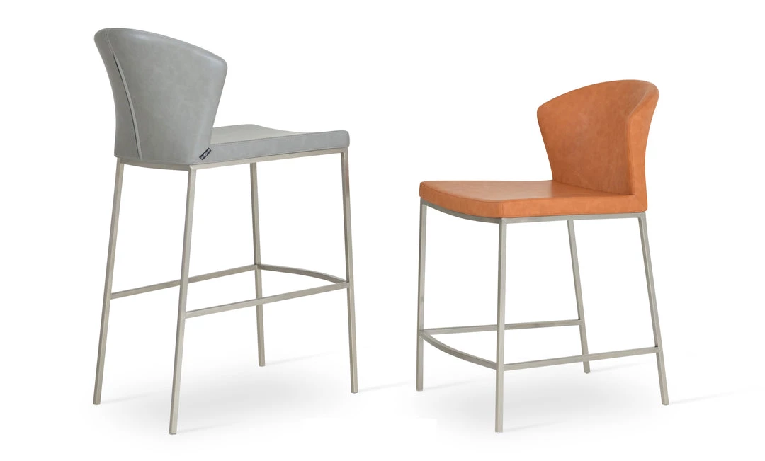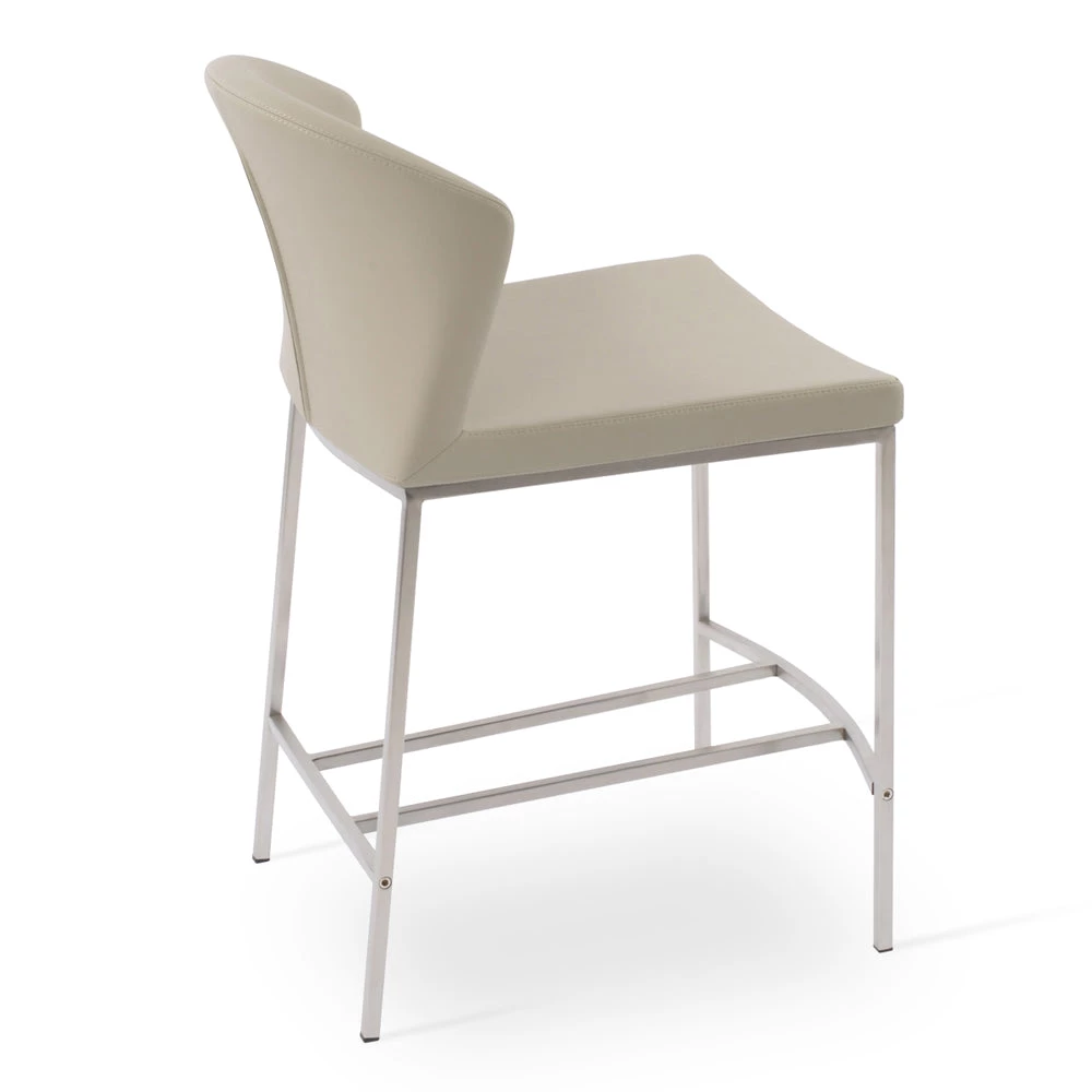 Capri Metal Stool is a contemporary counter and bar stool with a comfortable upholstered seat and backrest on brushed stainless steel legs which are plastic tipped. The seat has a steel structure with “S” shape springs for extra flexibility and strength. This steel frame is molded by injecting polyurethane foam. The stool is suitable for both residential and commercial use. Capri Metal Stool is designed by Tayfur Ozkaynak.