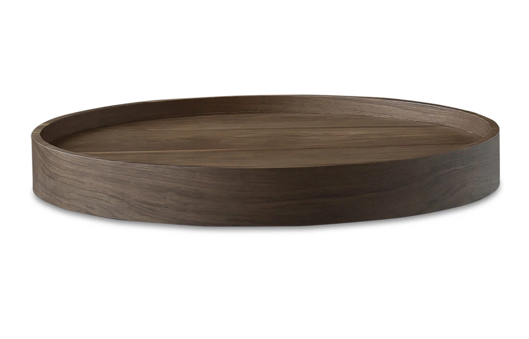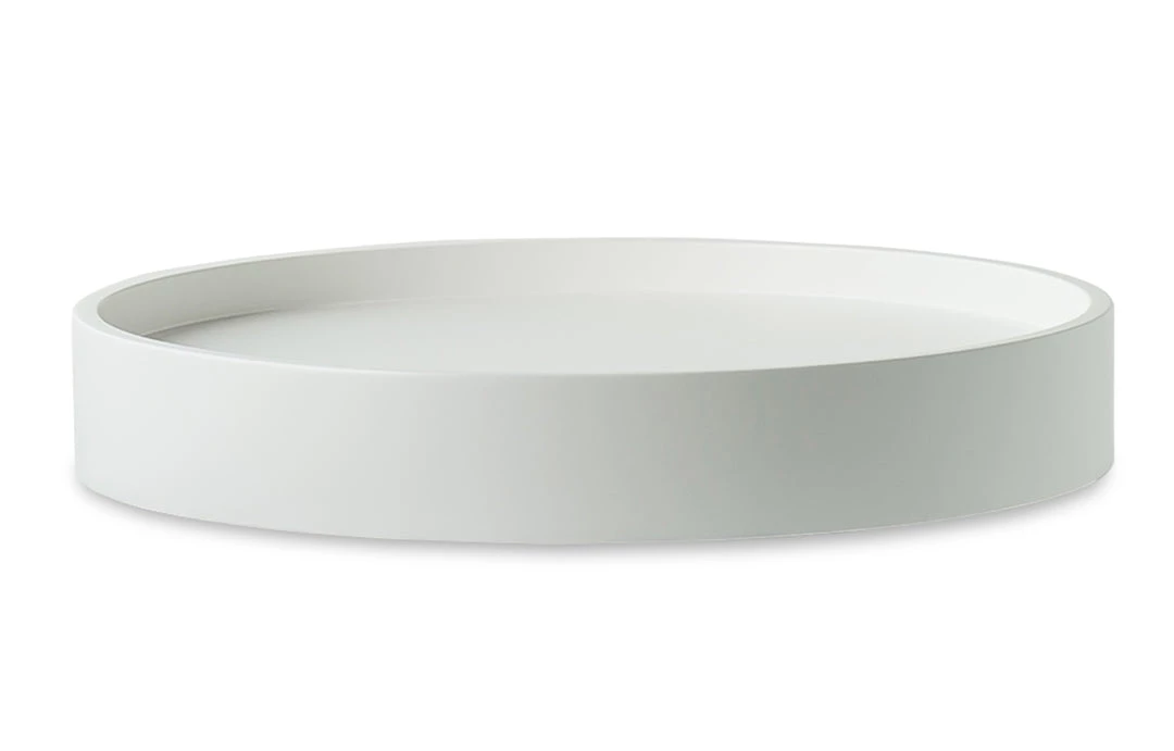 This simple and modern round tray sits on our Celine Poufs but is also perfect for serving, organizing, displaying decorative items, and as a table centerpiece The raised sides are designed to keep items from falling over. The Celine tray is ideal for any room.