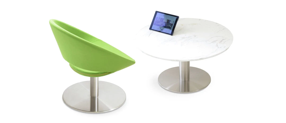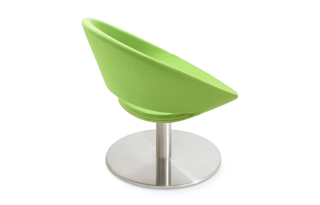 Crescent Round Lounge is a contemporary chair with a comfortable upholstered seat and backrest on a chromed steel tube column and solid chromed steel round base. The seat has a steel structure with “S” shape springs for extra flexibility and strength. This steel frame is molded by injecting polyurethane foam. Crescent seat is upholstered with a removable zipper enclosed leather, PPM, leatherette or wool fabric slip cover. Crescent Round Lounge may be upholstered with variety of other colors as a special order with a minimum of 24 required. The chair is suitable for both residential and commercial use. Crescent Round Lounge is designed by sohoConcept team.