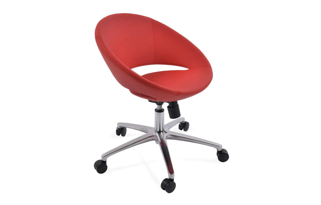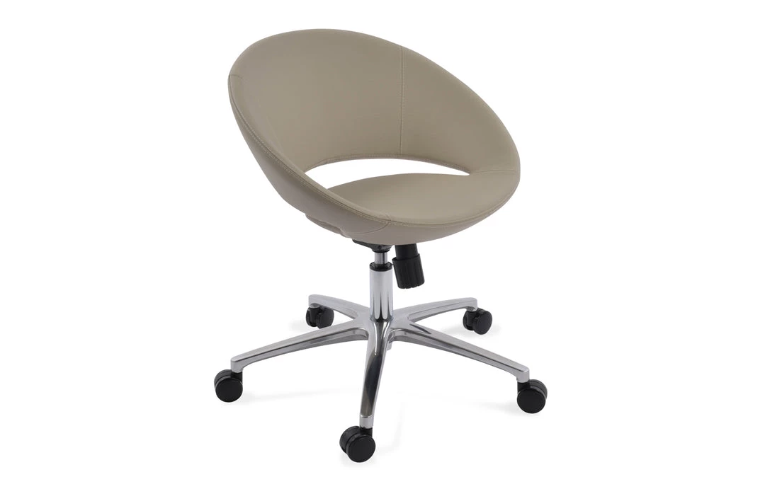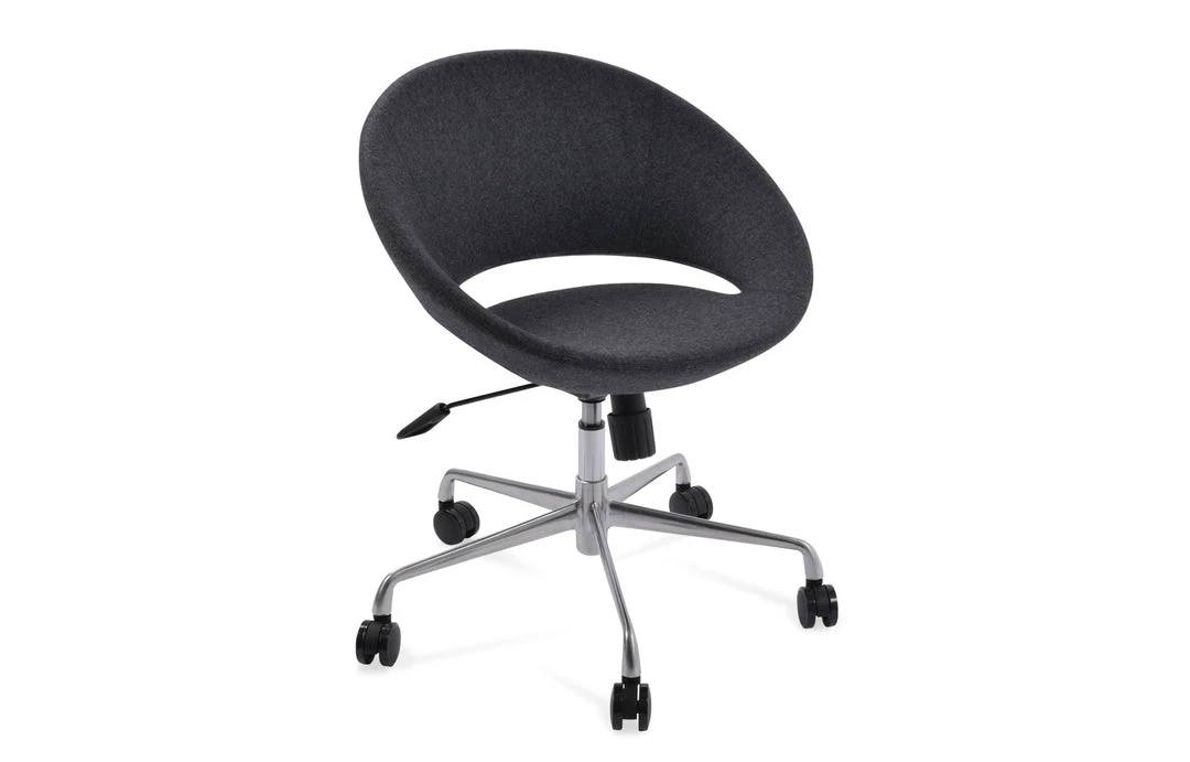 Designed by Tayfur Ozkaynak, Crescent office is a unique chair with a comfortable upholstered seat and backrest on a height-adjustable gas piston base which swivels and tilts. The chair has a chromed steel five star base with plastic casters. The seat has a steel structure with “S” shape springs for extra flexibility and strength. This steel frame molded by injecting polyurethane foam. Crescent seat is upholstered with a removable zipper enclosed leather, PPM or wool fabric slip cover. Crescent office chair could be upholstered with Maharam Kvadrat fabrics as a special order. The chair is suitable for both residential and commercial use.