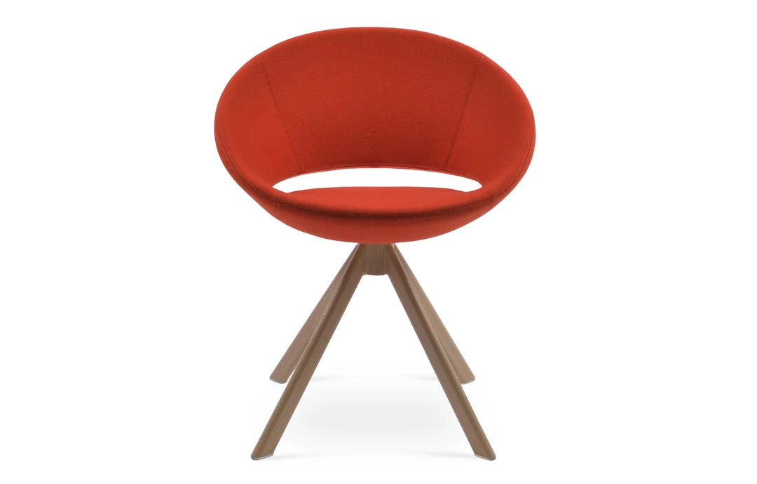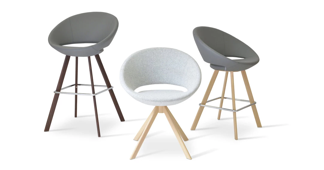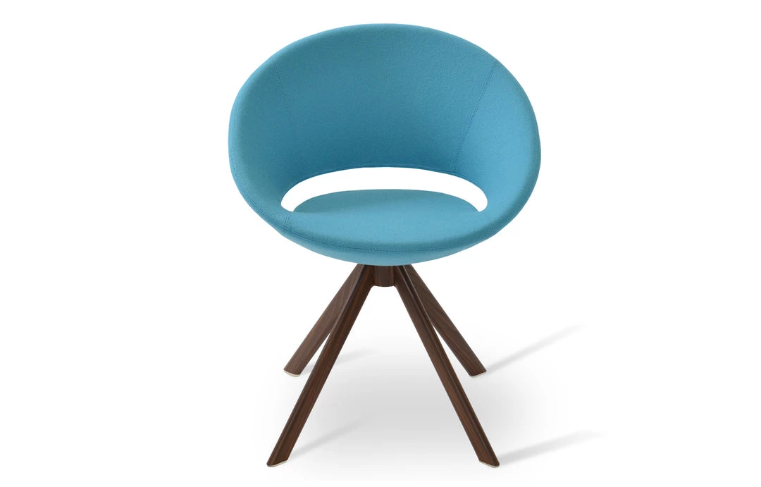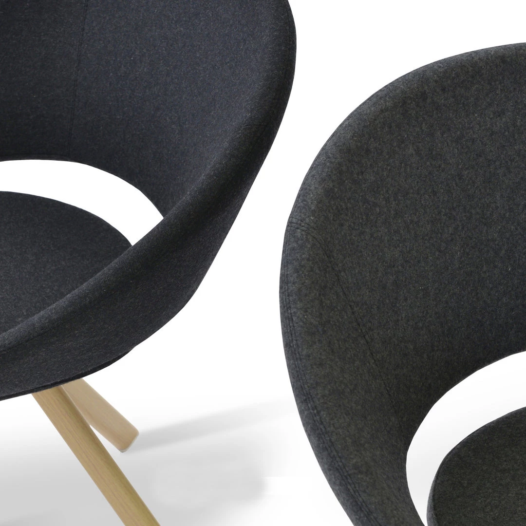 Crescent Sword is a unique dining chair with a comfortable upholstered seat and backrest on natural and walnut veneer steel base. The seat has a steel structure with “S” shape springs for extra flexibility and strength. This steel frame is molded by injecting polyurethane foam. Crescent seat is upholstered with a removable zipper enclosed leather, PPM, leatherette or wool fabric slip cover. This contemporary chair is suitable for both residential and commercial use. Crescent Sword is designed by Tayfur Ozkaynak.