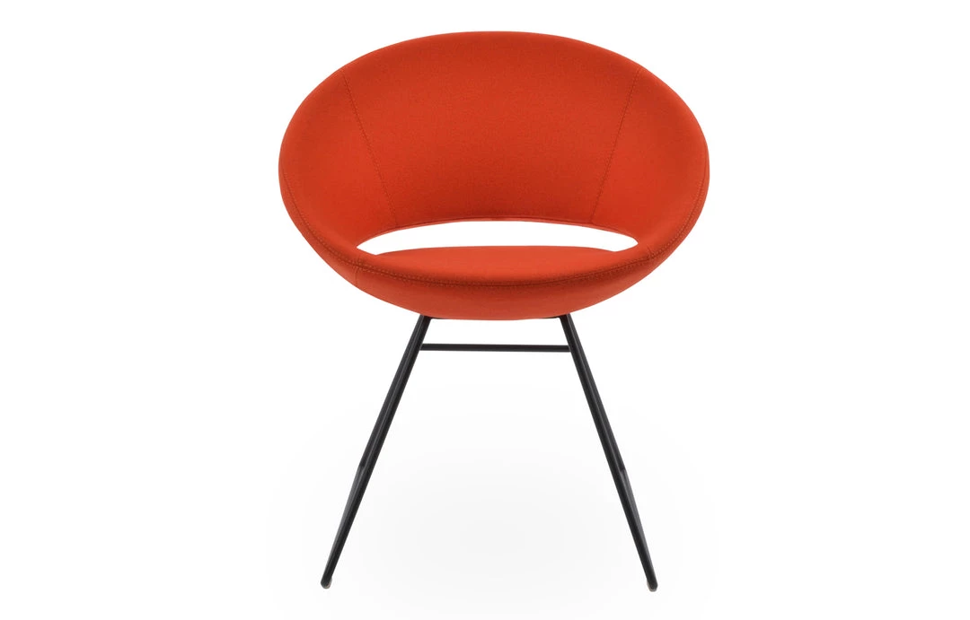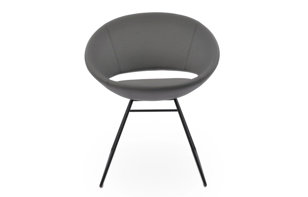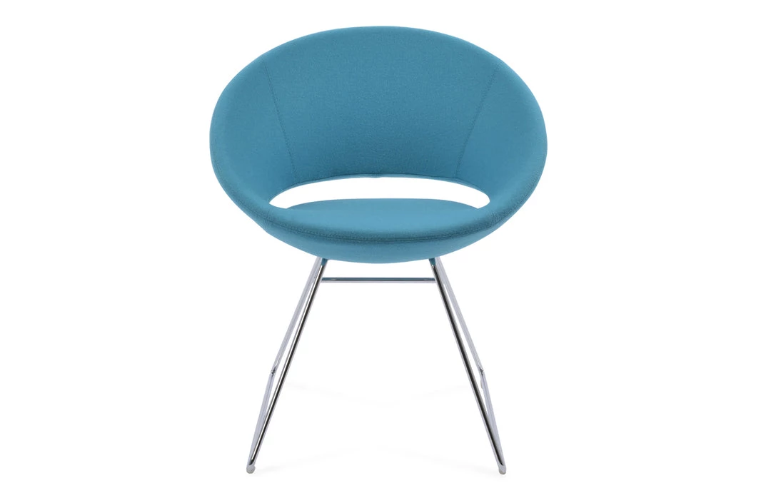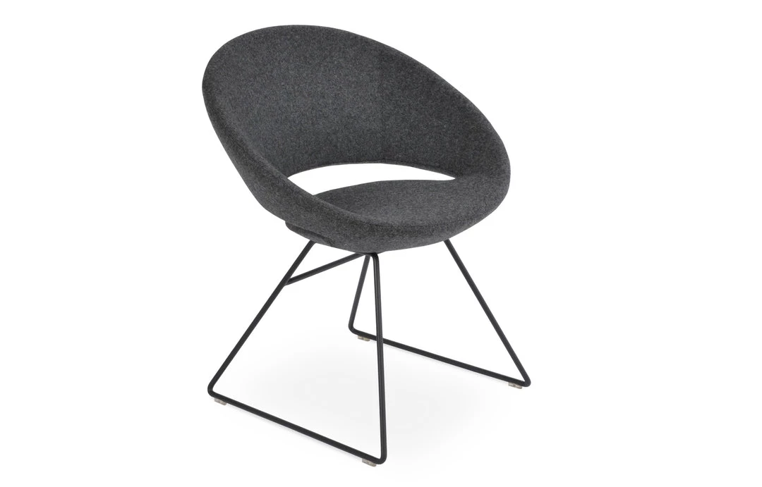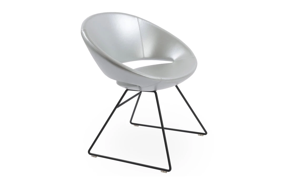 Crescent Wire is a contemporary dining chair with a comfortable upholstered seat and backrest on chrome steel sled base. The steel sled base can be finished in black or white powder coating. Each leg is tipped with a plastic glide embedded into the metal wire. The seat has a steel structure with “S” shape springs for extra flexibility and strength. This steel frame molded by injecting polyurethane foam. Crescent seat is upholstered with a removable zipper enclosed leather, PPM, leatherette or wool fabric slip cover. The chair is suitable for both residential and commercial use. Crescent Wire is designed by Tayfur Ozkaynak.
