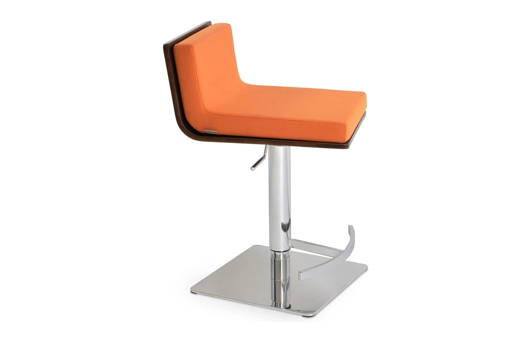 Dallas Piston is a contemporary stool with a comfortable upholstered seat and backrest on an adjustable gas piston base which swivels and also adjusts easily from a counter height to a bar height with a lever that activates the gas piston mechanism. The solid steel round/square base is available in chromed steel. The seat has a steel structure with “S” shape springs for extra flexibility and strength. This steel frame molded by injecting polyurethane foam. Dallas seat is upholstered with a removable velcro enclosed leather, PPM or leatherette slip cover. This modern stool is suitable for both residential and commercial use. Dallas Piston is designed by sohoConcept team.