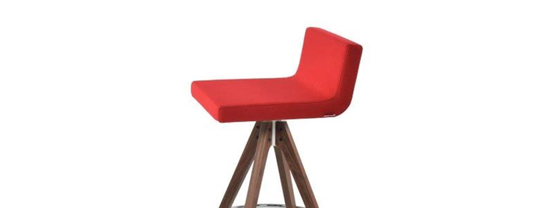 Dallas Pyramid Swivel is a contemporary bar and counter stool with a comfortable upholstered seat and backrest on a natural and walnut wood base. The seat has a steel structure with “S” shape springs for extra flexibility and strength. This steel frame is molded by injecting polyurethane foam. The stool is suitable for both residential and commercial use.