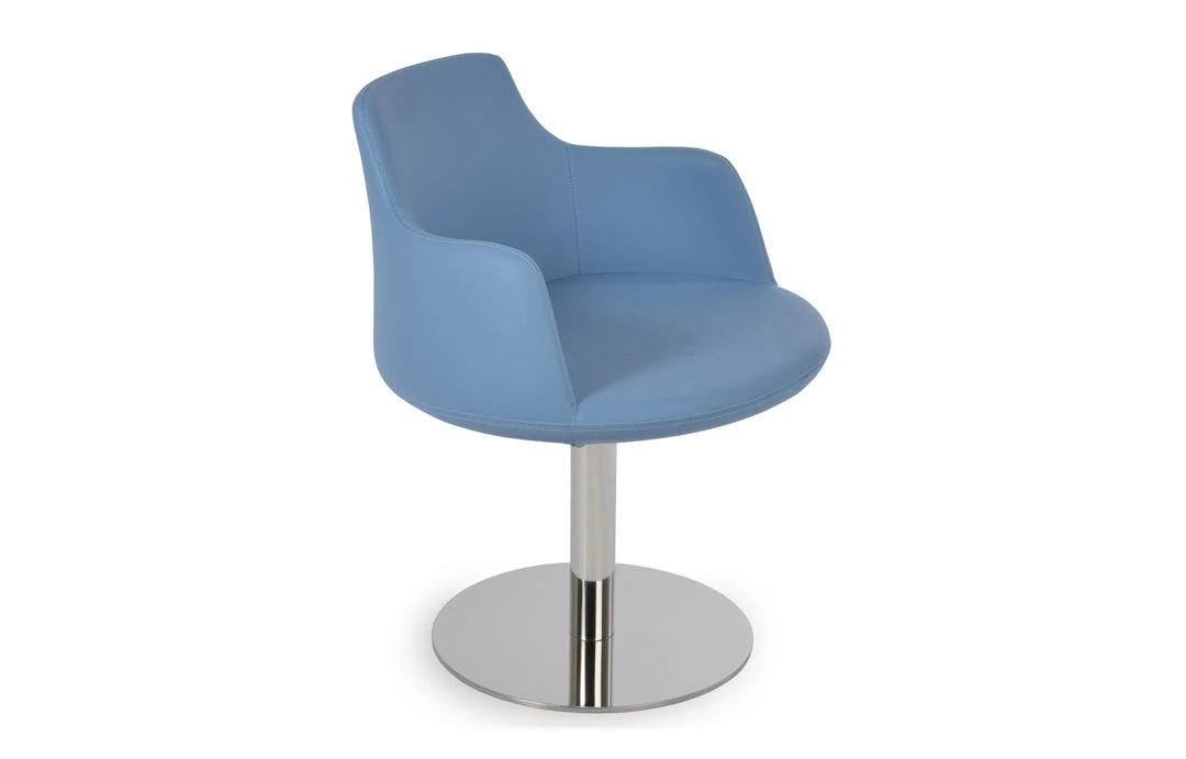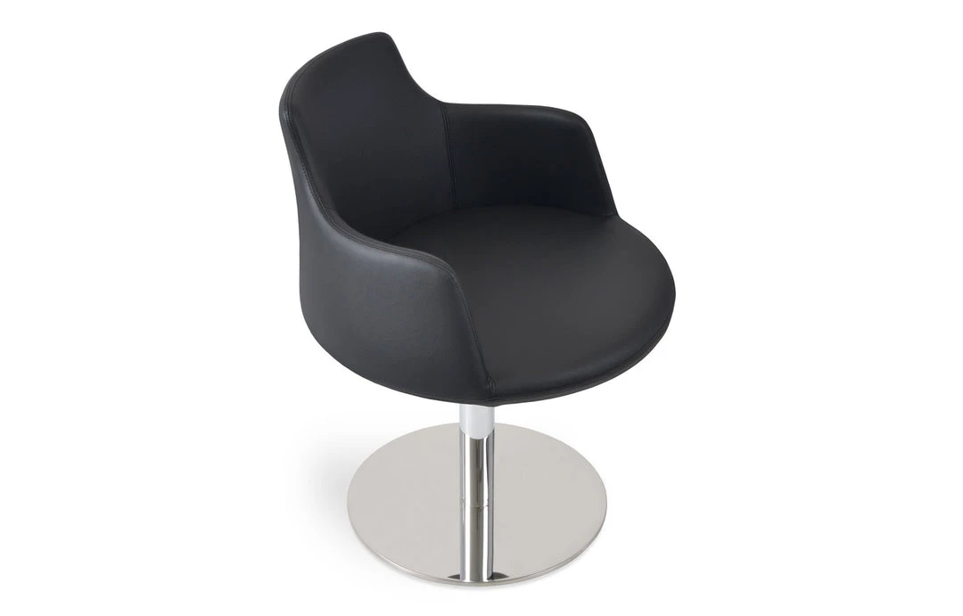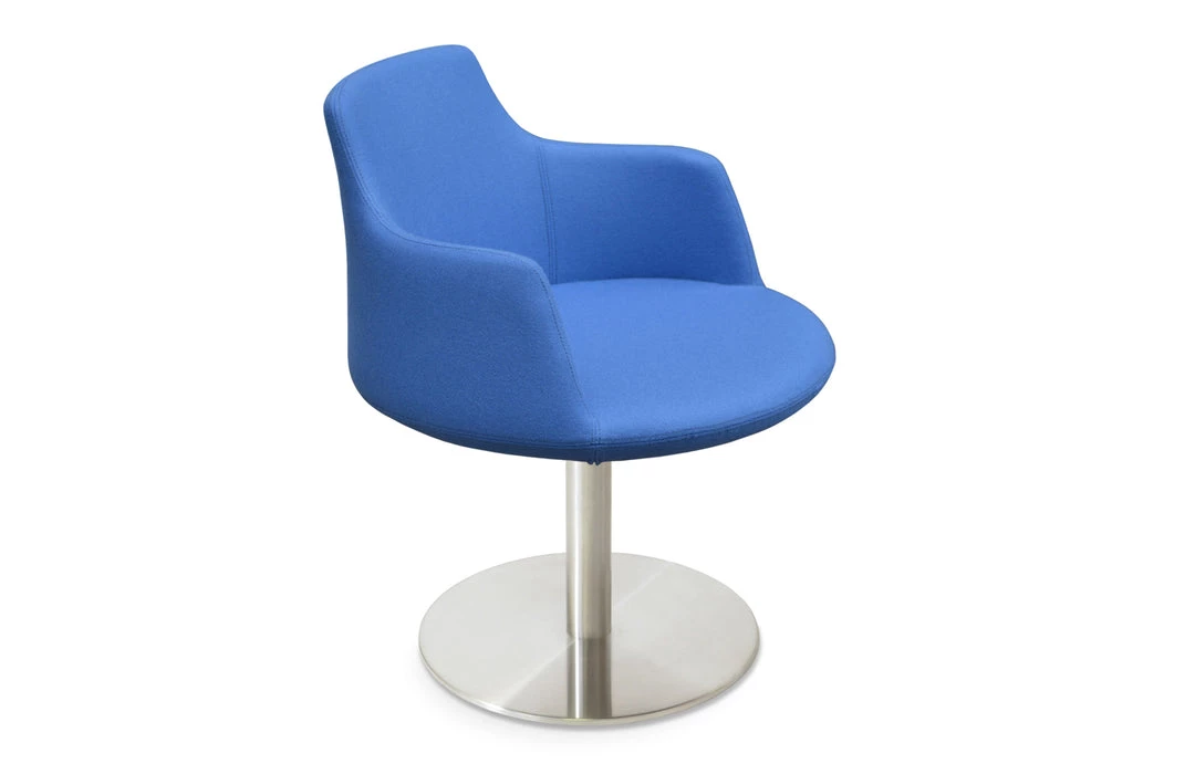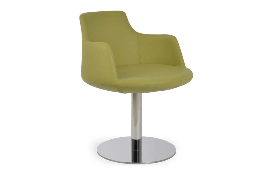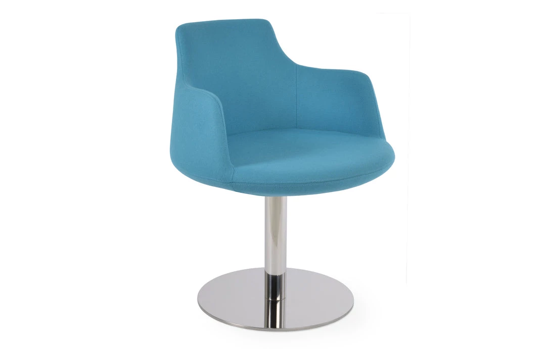 Dervish Round is a contemporary chair with a comfortable upholstered seat and backrest on a chromed steel tube column and solid chromed steel round base. The seat has a steel structure with “S” shape springs for extra flexibility and strength. This steel frame is molded by injecting polyurethane foam. Dervish Round seat is upholstered with a removable zipper enclosed leather, PPM, leatherette or wool fabric slip cover. The chair is suitable for both residential and commercial use. Dervish Round is designed by sohoConcept team.