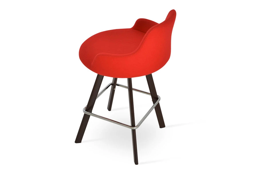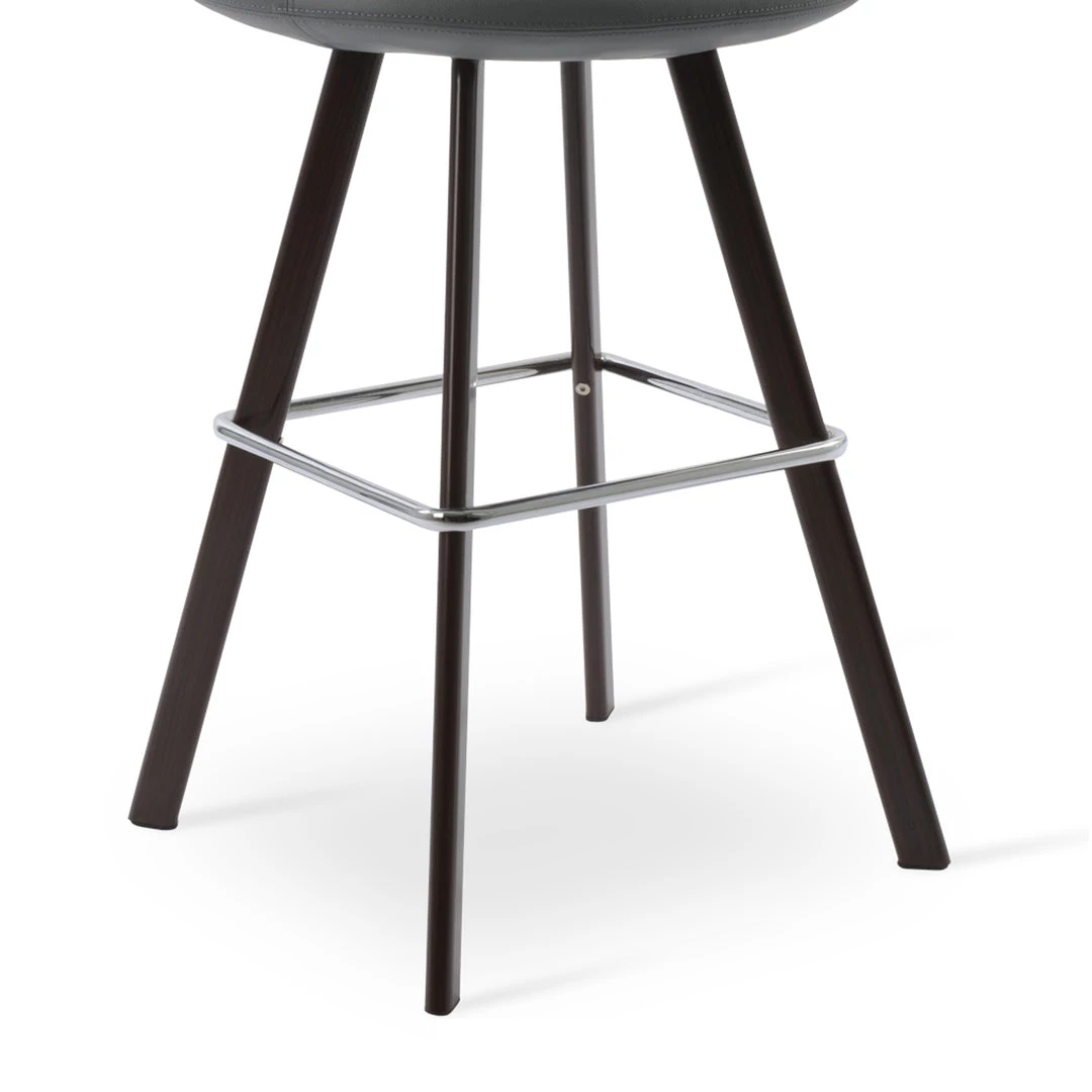 Dervish Sword is a modern stool with a comfortable upholstered seat and backrest on a coated steel frame. Metal legs are available in black powder, natural as well as stainless steel finishes. Each leg is tipped with a plastic glide inserted to the foot. With its chromed steel tubular footrests, it becomes an ideal solution for kitchen and bar counters. The footrests are fixed inside the four-leg frame. The seat has a steel structure with “S” shape springs for extra flexibility and strength. This steel frame is molded by injecting polyurethane foam. Dervish Sword stool are available with swivel seat options too. Dervish Sword stool is designed by sohoConcept team.