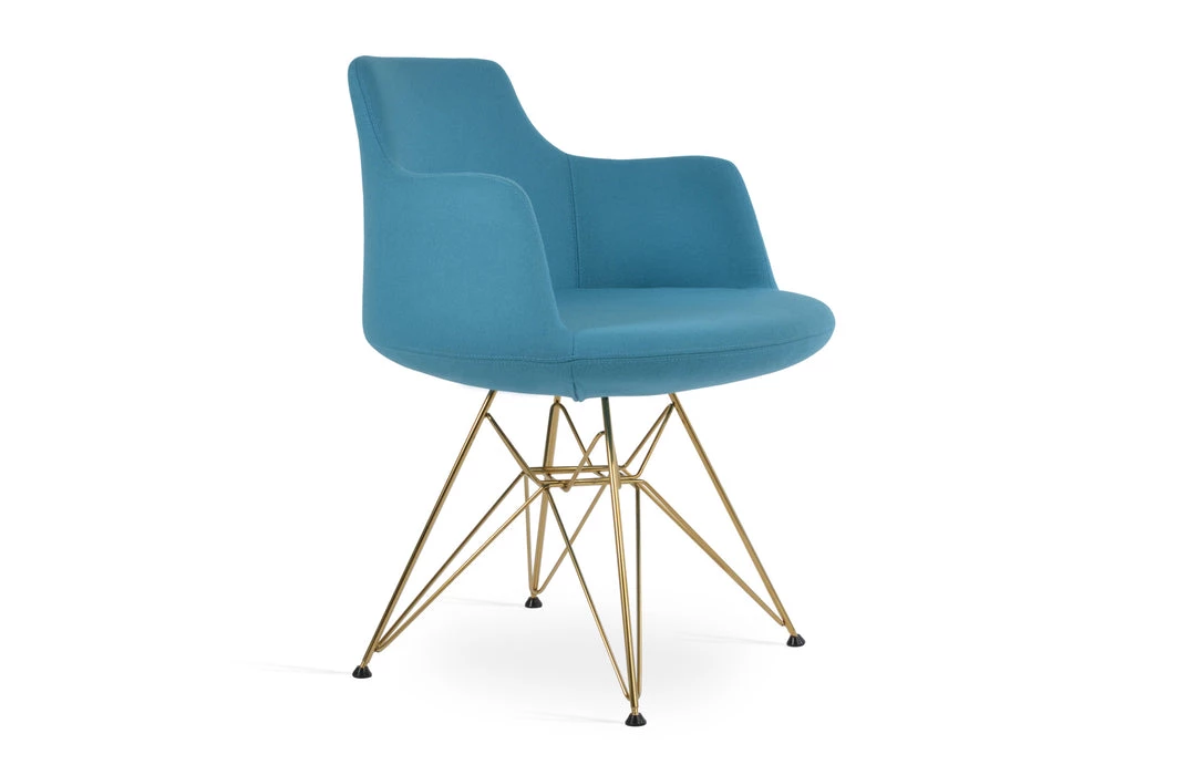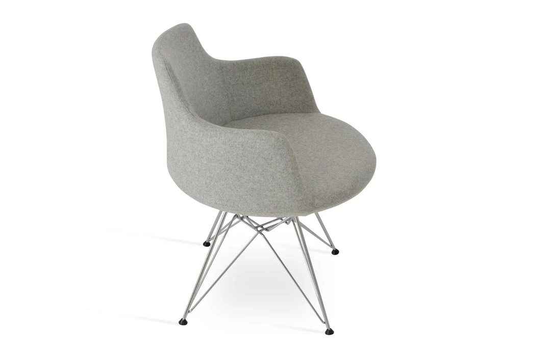 Dervish Tower is a modern dining chair with an upholstered seat and backrest on a chrome steel base as well as brushed black, white, red and gold options, tipped with screwed plastic caps. The seat has a steel structure with “S” shape springs for extra flexibility and strength. This steel frame is molded by injecting polyurethane foam. Dervish seat is upholstered with a removable zipper slip cover that can be changed with professional help. Camira Fabrics are 5 year guaranteed from the date of invoice against wear through (the complete deterioration of the fabric’s structure in a particular area) and loss of colorfastness (the excessive loss of color due to exposure to light). Dervish Tower is suitable for both residential and commercial use. Dervish Tower Chair is designed by Tayfur Ozkaynak.