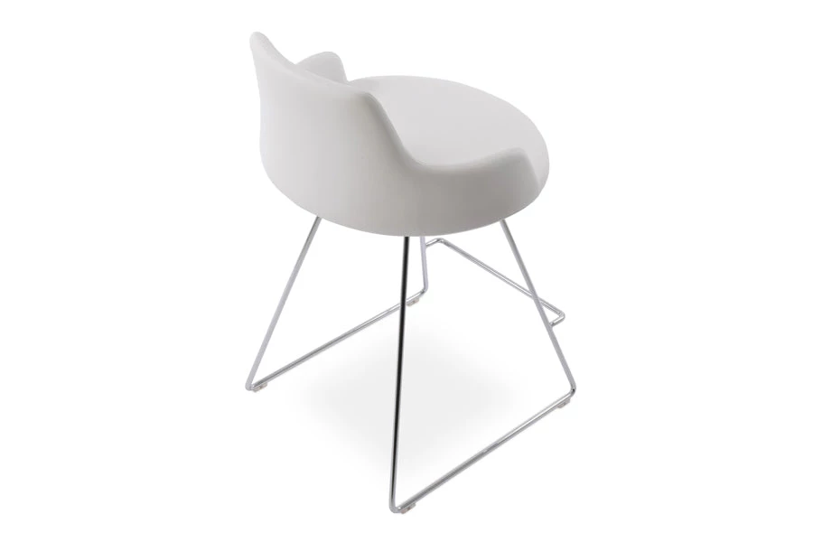 Dervish Wire stool is a unique counter and bar stool with a comfortable upholstered seat and backrest on solid chromed steel wire base. Each leg is tipped with a plastic glide embedded into the metal wire. The seat has a steel structure with “S” shape springs for extra flexibility and strength. This steel frame is molded by injecting polyurethane foam. Dervish Wire stool is suitable for both residential and commercial use. Dervish Wire stool is designed by sohoConcept team.