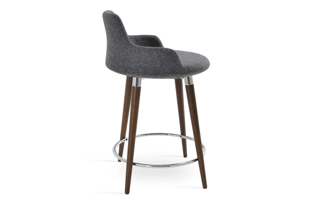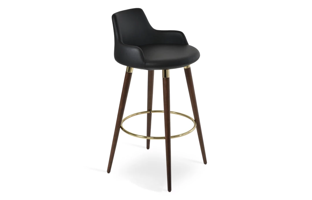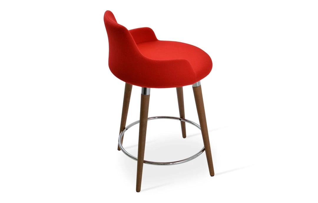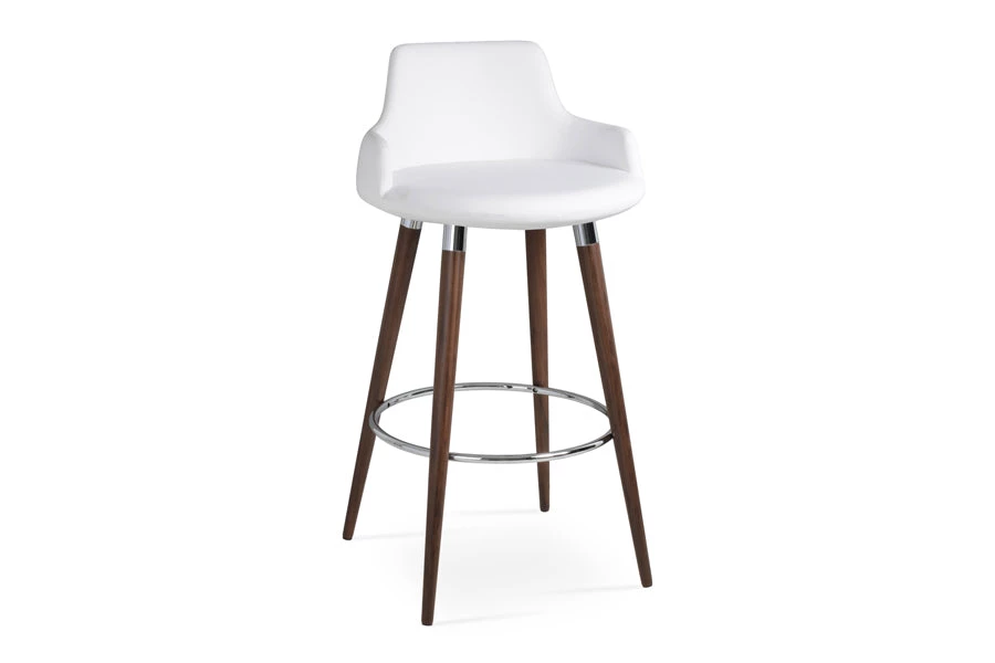 Dervish Wood is a modern stool with a comfortable upholstered seat and backrest on wood legs that are available in solid beech walnut and wenge finish, Natural Ash and American Walnut. The seat has a steel structure with “S” shape springs for extra flexibility and strength. This steel frame is molded by injecting polyurethane foam. Dervish Wood stool is designed by sohoConcept team and it’s is suitable for both residential and commercial use.
