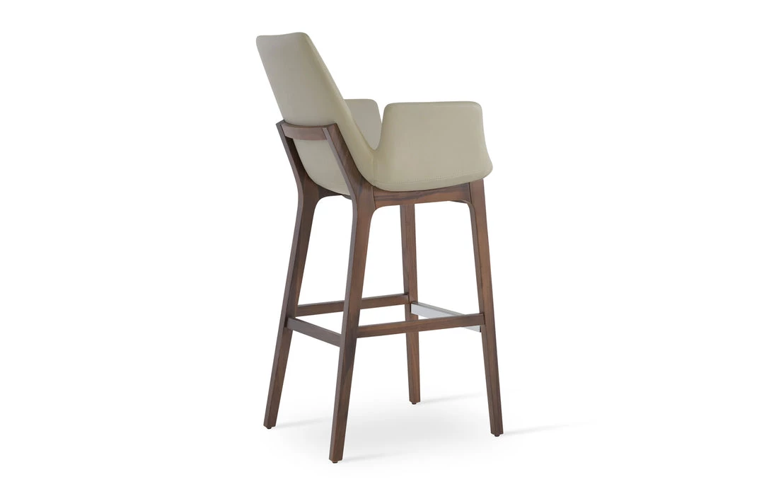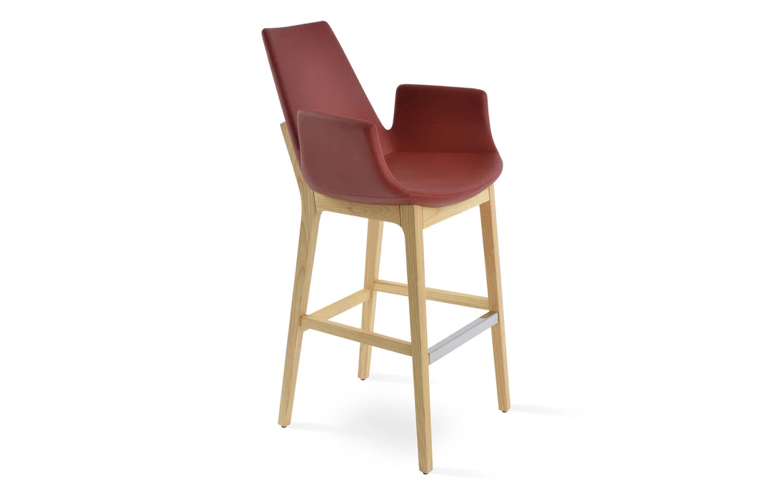 Eiffel Wood Arm is a contemporary stool with a comfortable upholstered seat and backrest on a solid walnut beech. The seat has a steel structure with “S” shape springs for extra flexibility and strength. This steel frame is molded by injecting polyurethane foam. Eiffel seat is upholstered with a removable velcro, enclosed leather, PPM, leatherette, wool as well as Camira organic wool slip cover. Eiffel Wood Stool may be upholstered with variety of other colors as a special order with a minimum of quantity required. The stool is suitable for both residential and commercial use. Eiffel Wood Arm Stool is designed by the sohoConcept team.