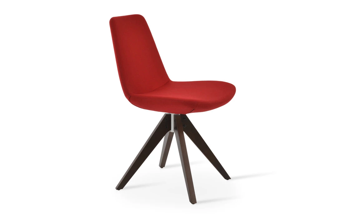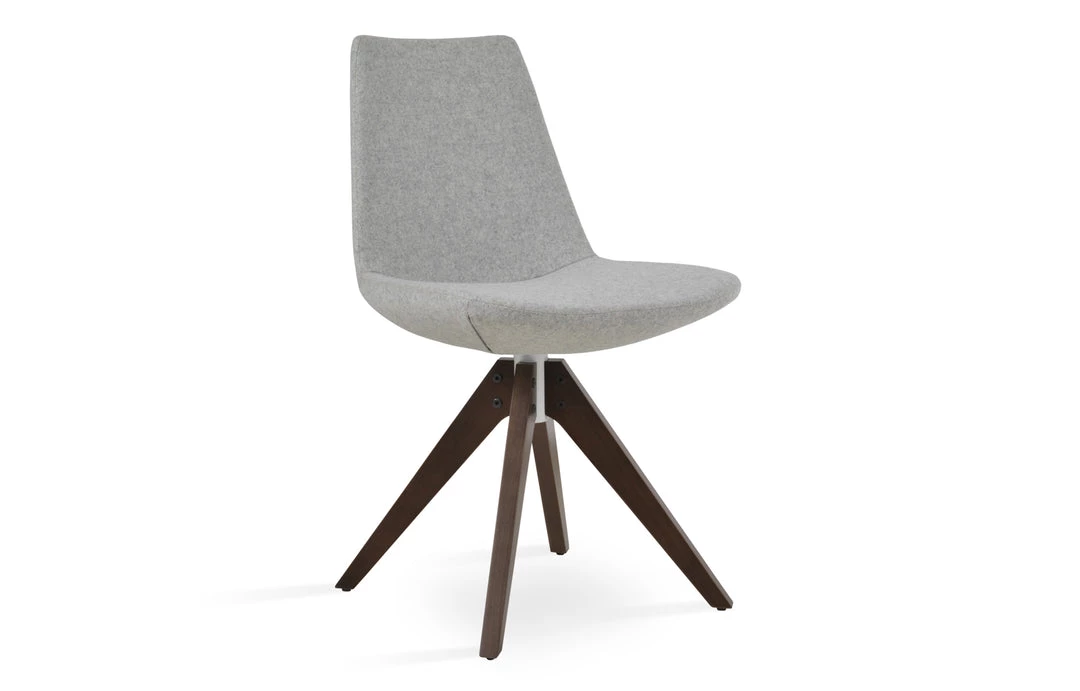 Eiffel Pyramid Swivel is a contemporary chair with a comfortable upholstered seat and backrest on a solid swivel wood base. The seat has a steel structure with “S” shape springs for extra flexibility and strength. This steel frame is molded by injecting polyurethane foam. Eiffel seat is upholstered with a removable velcro, enclosed leather, PPM, leatherette, wool as well as Camira organic wool slip cover. Eiffel Pyramid Swivel may be upholstered with variety of other colors as a special order with a minimum of quantity required. The chair is suitable for both residential and commercial use. Eiffel Pyramid Swivel is designed by the sohoConcept team.